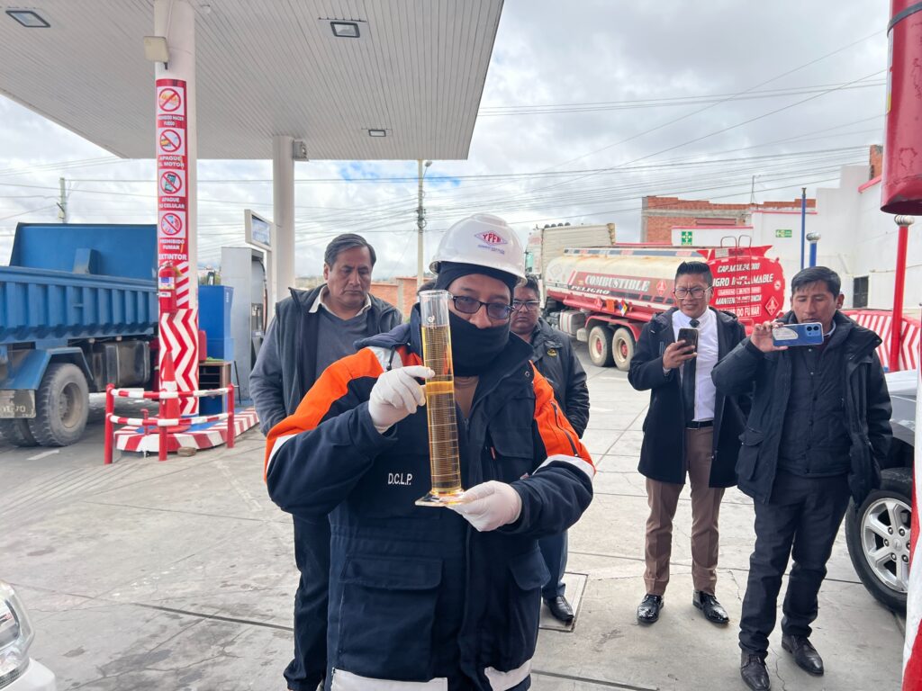 Los parámetros analizados de las tres estaciones de servicio privadas, en presencia de varios dirigentes designados para esta comisión, cumplen con las especificaciones establecidas. Las muestras fueron tomadas por el ente regulador en las estaciones de servicio de Chasquipampa, Gas-May y Chaly. El objetivo de la inspección fue verificar las condiciones de calidad de la gasolina comercializada en estos puntos de venta.