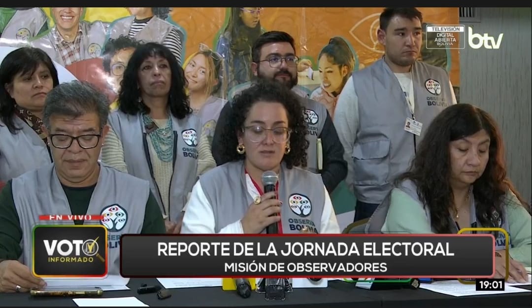Observa Bolivia continuará recibiendo reportes y emitirá un informe preliminar consolidado en las próximas 48 horas. Además, acompañará el proceso de consolidación y difusión del cómputo oficial en los tribunales departamentales electorales.
