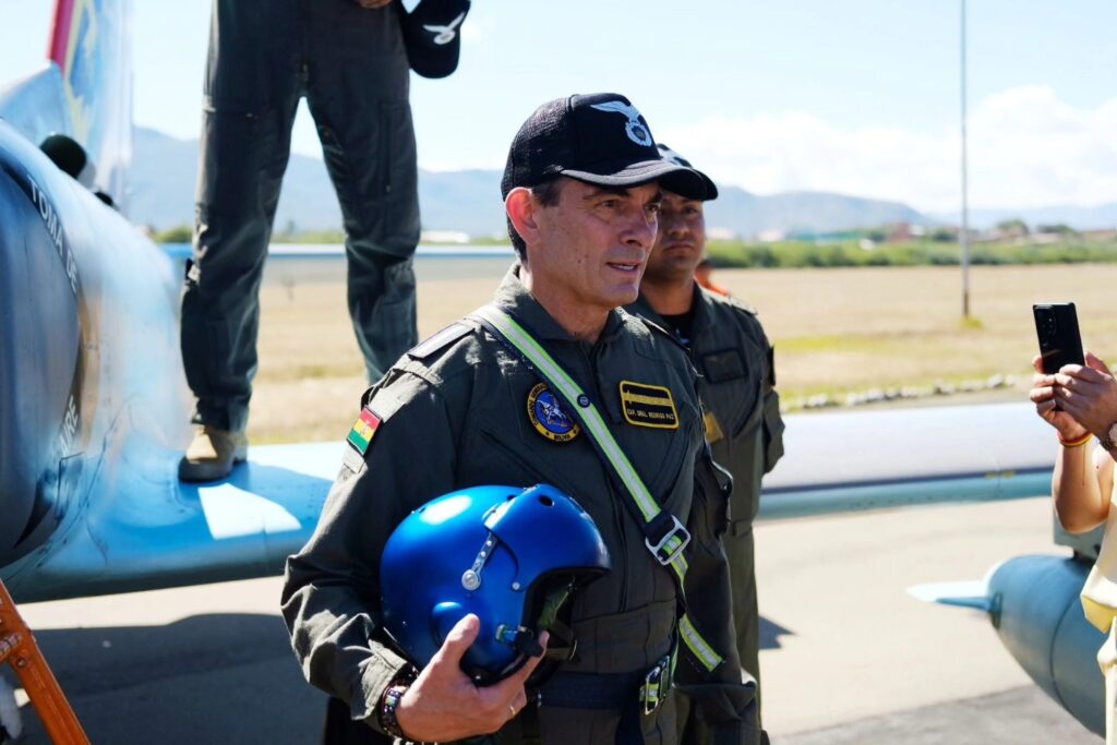 Tarija, 15 de abril de 2026 (ABI).- El presidente de Bolivia, Rodrigo Paz, como Capitán General de las Fuerza Armadas, realizó este miércoles su primer vuelo en una aeronave de transición a caza Karakorum K-8 en el marco del aniversario 209 de Tarija por la Batalla de la Tablada.