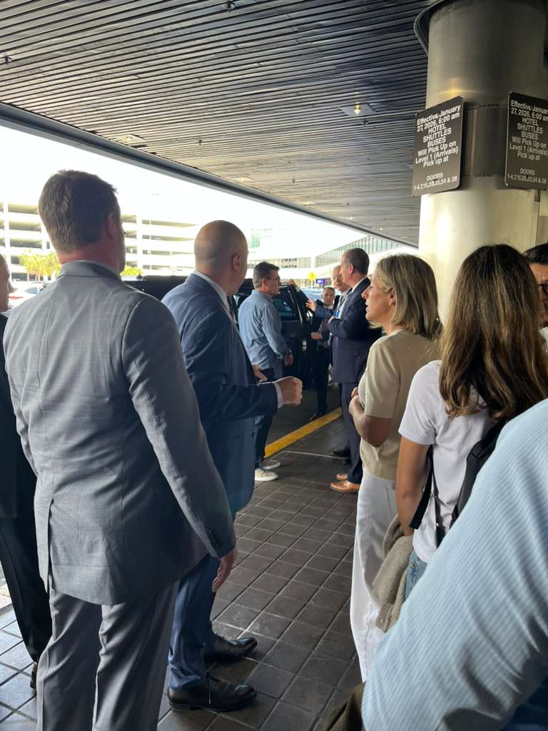 El presidente Rodrigo Paz y la Primera Dama son recibidos por una delegación en Estados Unidos.El presidente Rodrigo Paz y la Primera Dama son recibidos por una delegación en Estados Unidos.