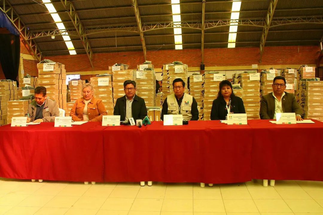 La Paz, 18 de abril de 2026 (ABI).– En miras a la segunda vuelta electoral en cinco departamentos del país, el Tribunal Supremo Electoral (TSE) continúa con la distribución de las maletas electorales y programó un conversatorio entre analistas y observadores nacionales e internacionales.