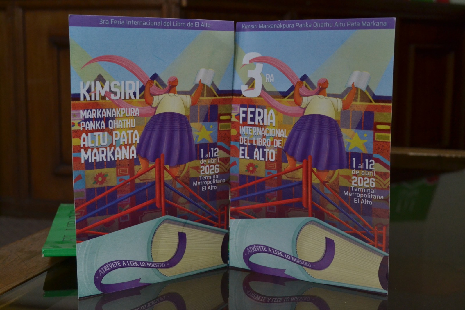 El cartel de la nueva versión de la FILEA fue develado durante la presentación oficial en el salón de la Escuela Municipal de Artes del Gobierno Autónomo Municipal de El Alto (GAMEA).