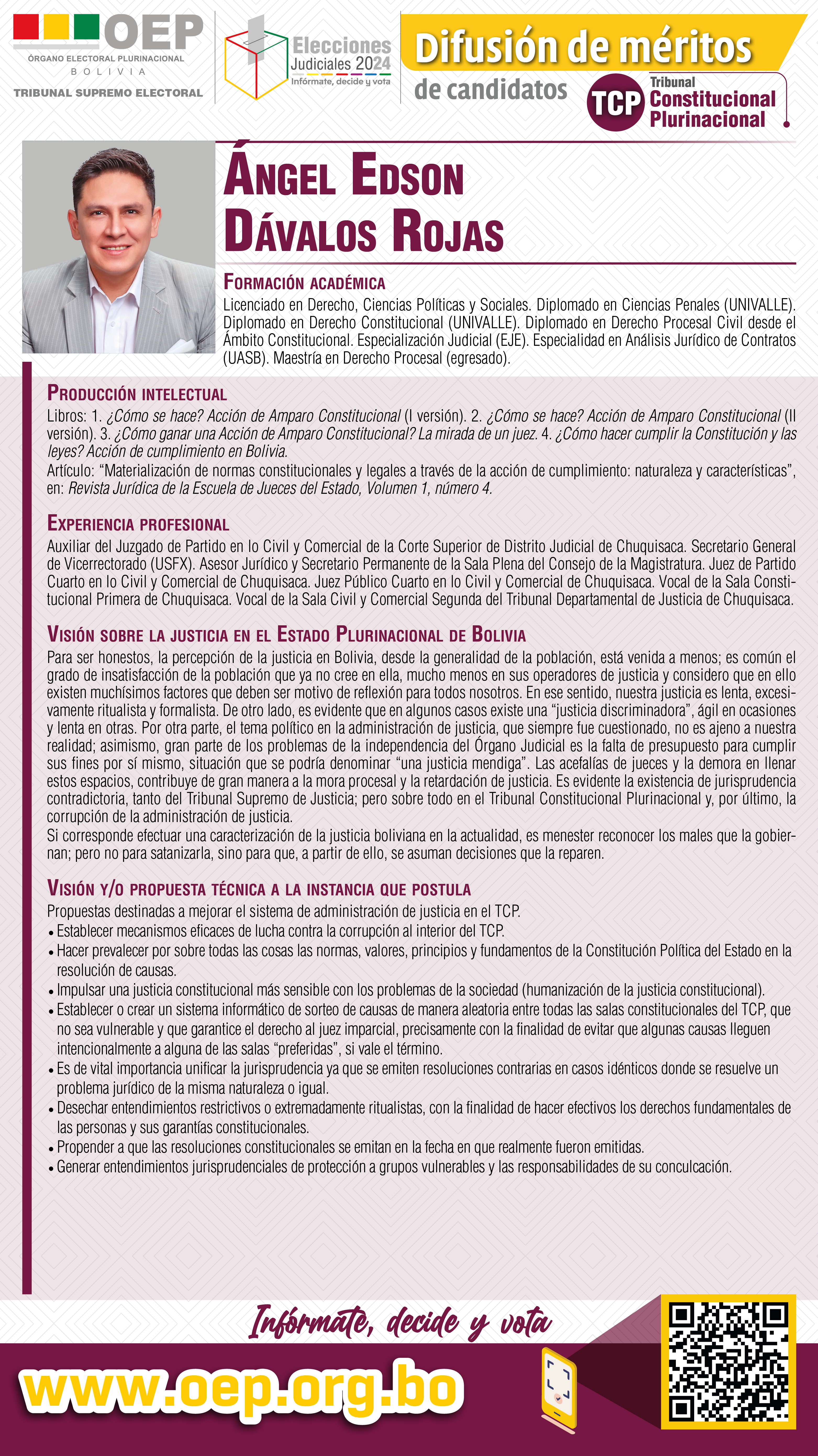 ELECCIONES JUDICIALES: Conozca al candidato al TCP por Chuquisaca, Ángel Edson Dávalos Rojas