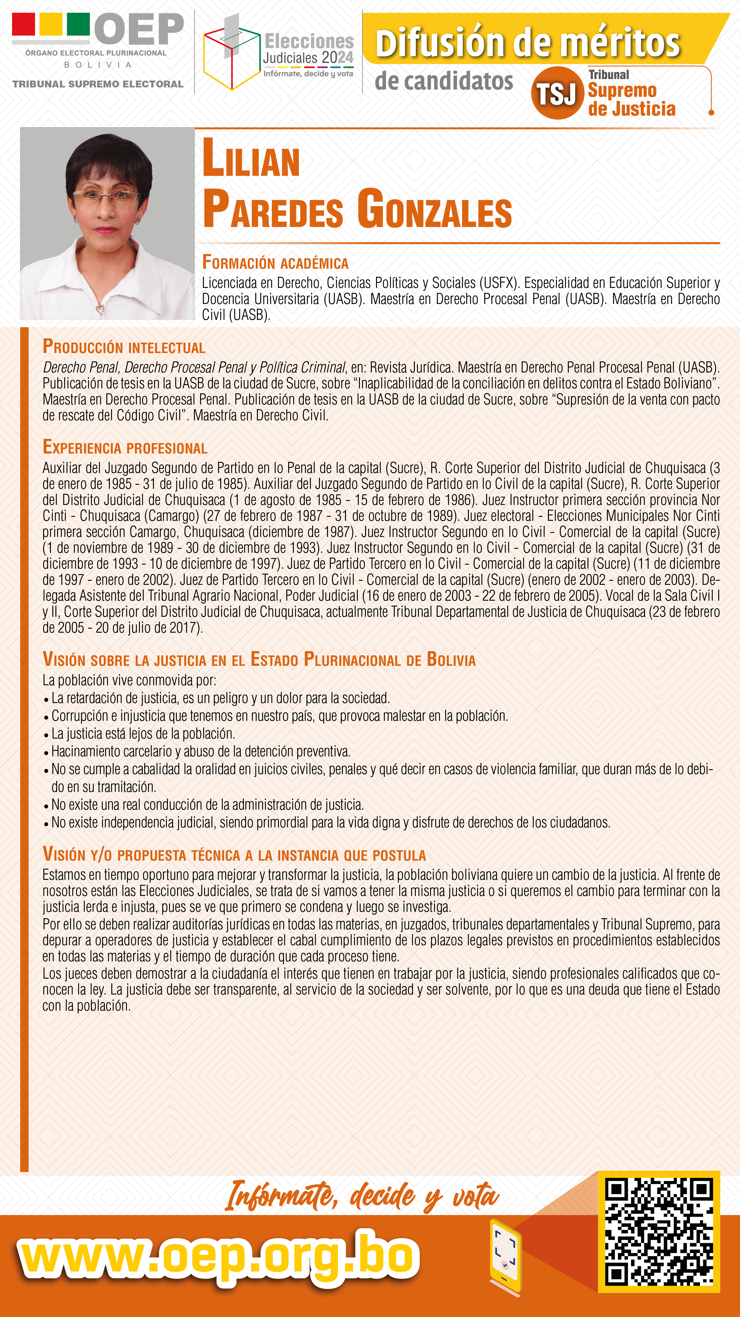 ELECCIONES JUDICIALES: Conozca a la candidata al TSJ por Chuquisaca, Lilian Paredes Gonzales