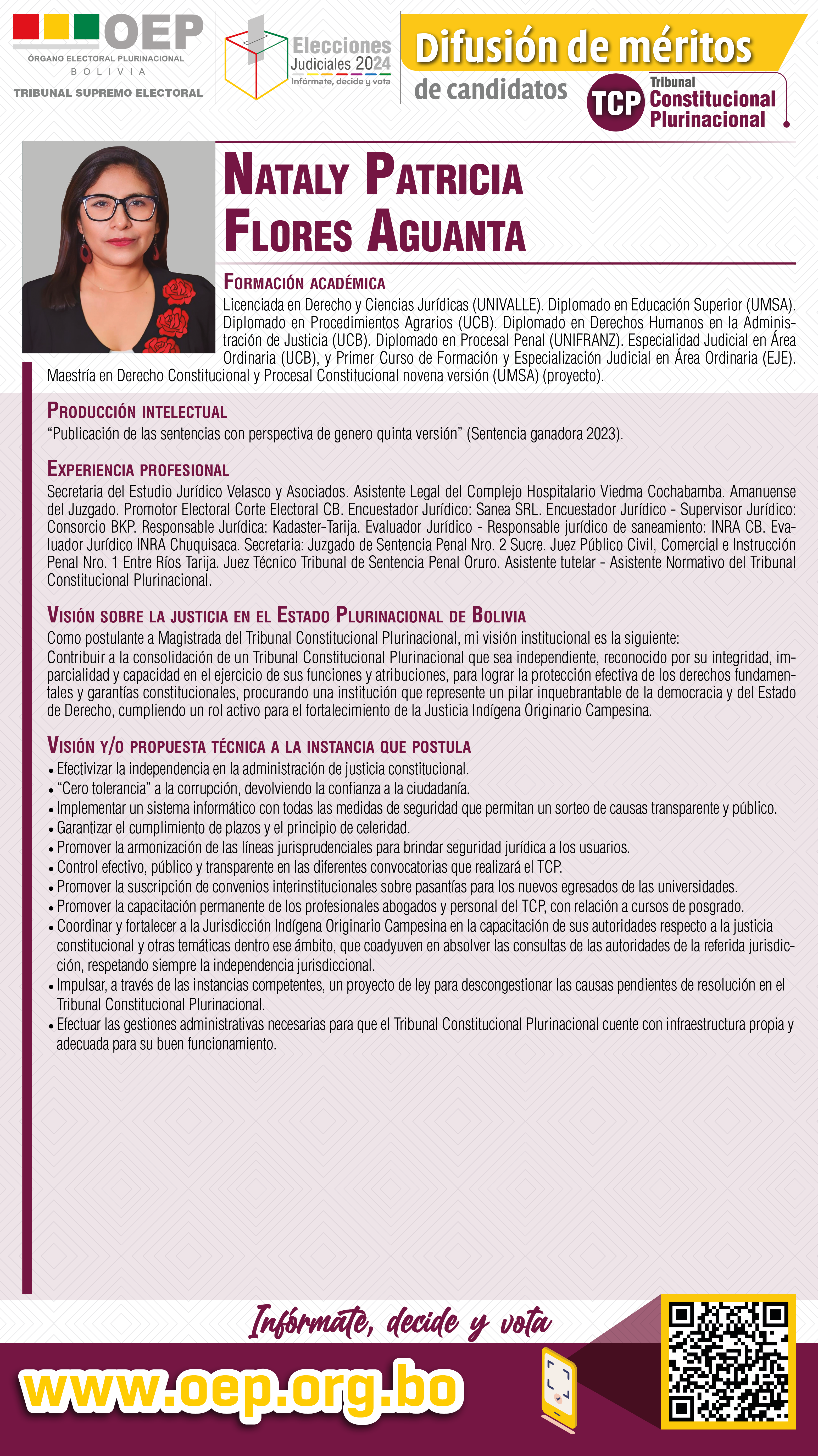 ELECCIONES JUDICIALES: Conozca a la candidata al TCP por Chuquisaca, Nataly Patricia Flores Aguanta