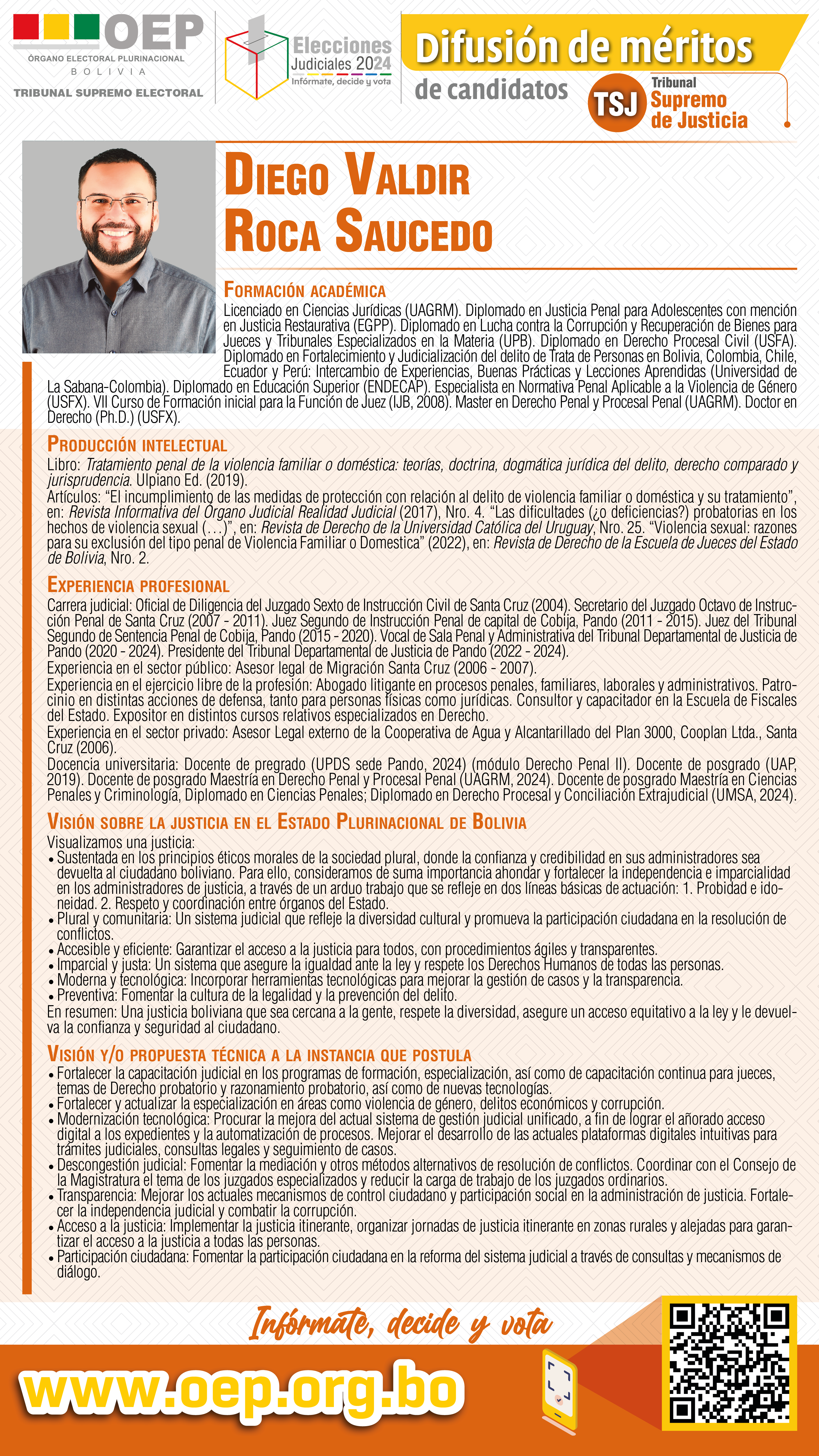 ELECCIONES JUDICIALES: Conozca al candidato al TSJ por Pando, Diego Valdir Roca Saucedo