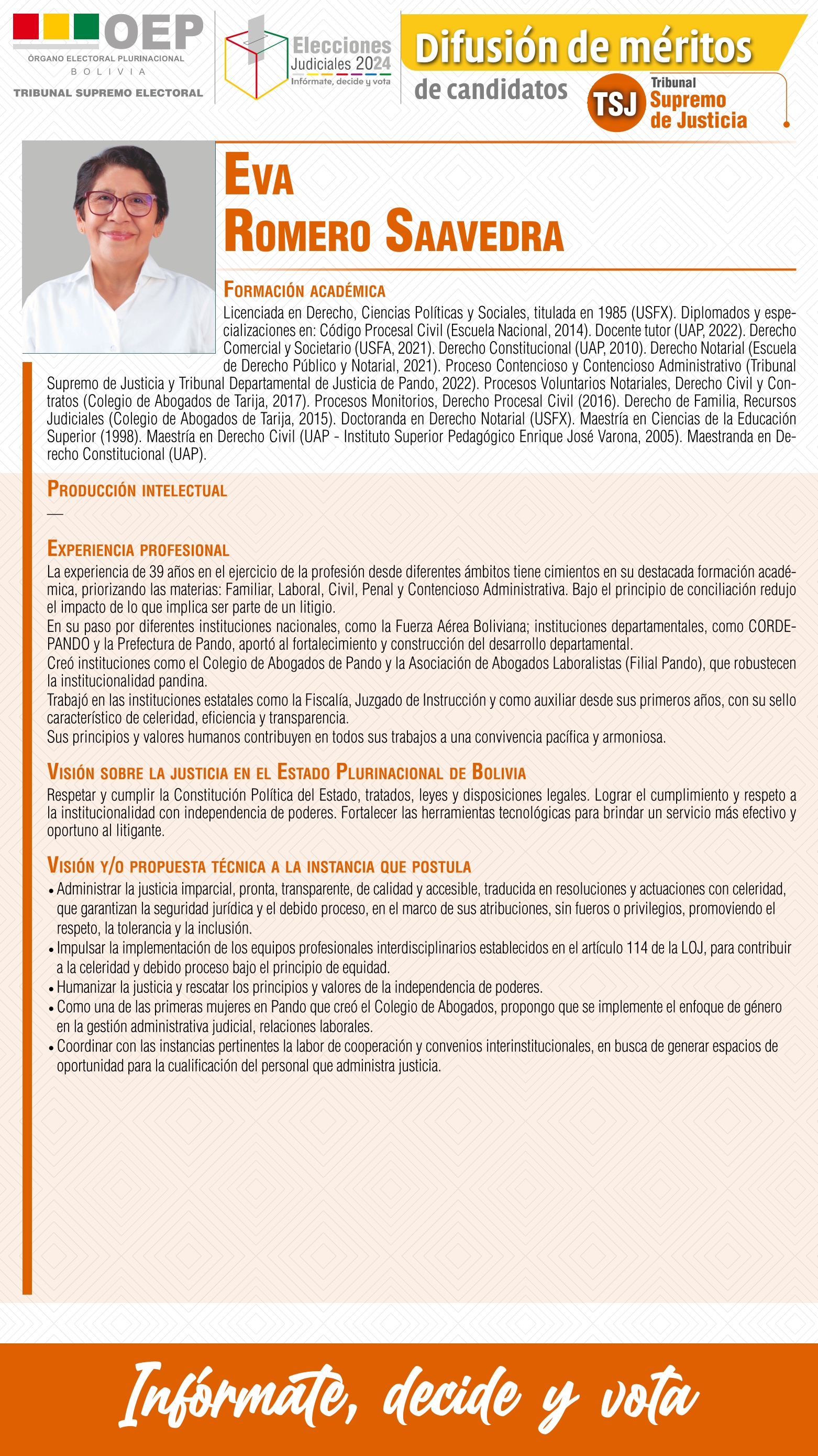 ELECCIONES JUDICIALES: Conozca a la candidata al TSJ por Pando, Eva Romero Saavedra