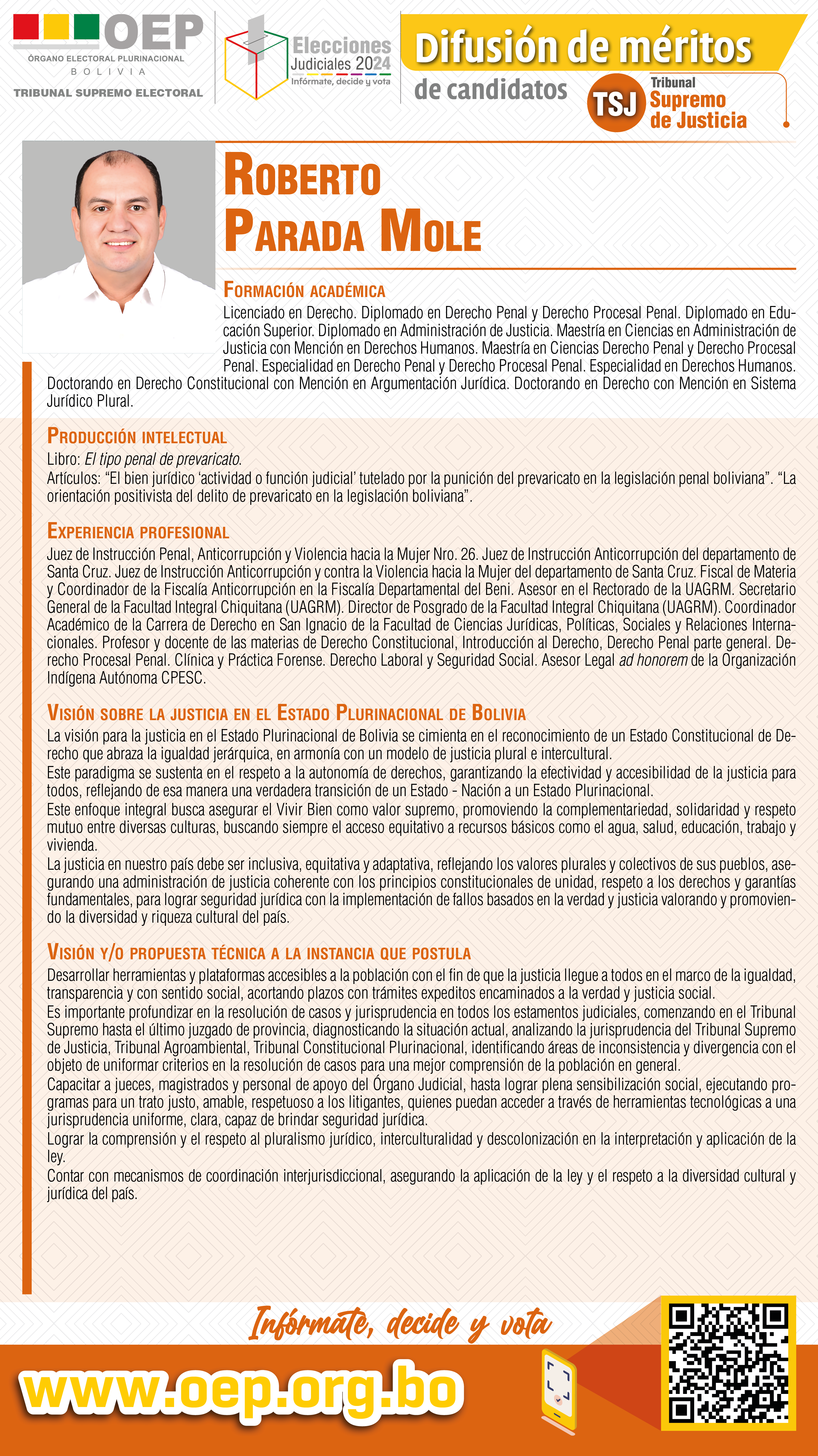 ELECCIONES JUDICIALES: Conozca al candidato al TSJ por Santa Cruz, Roberto Parada Mole