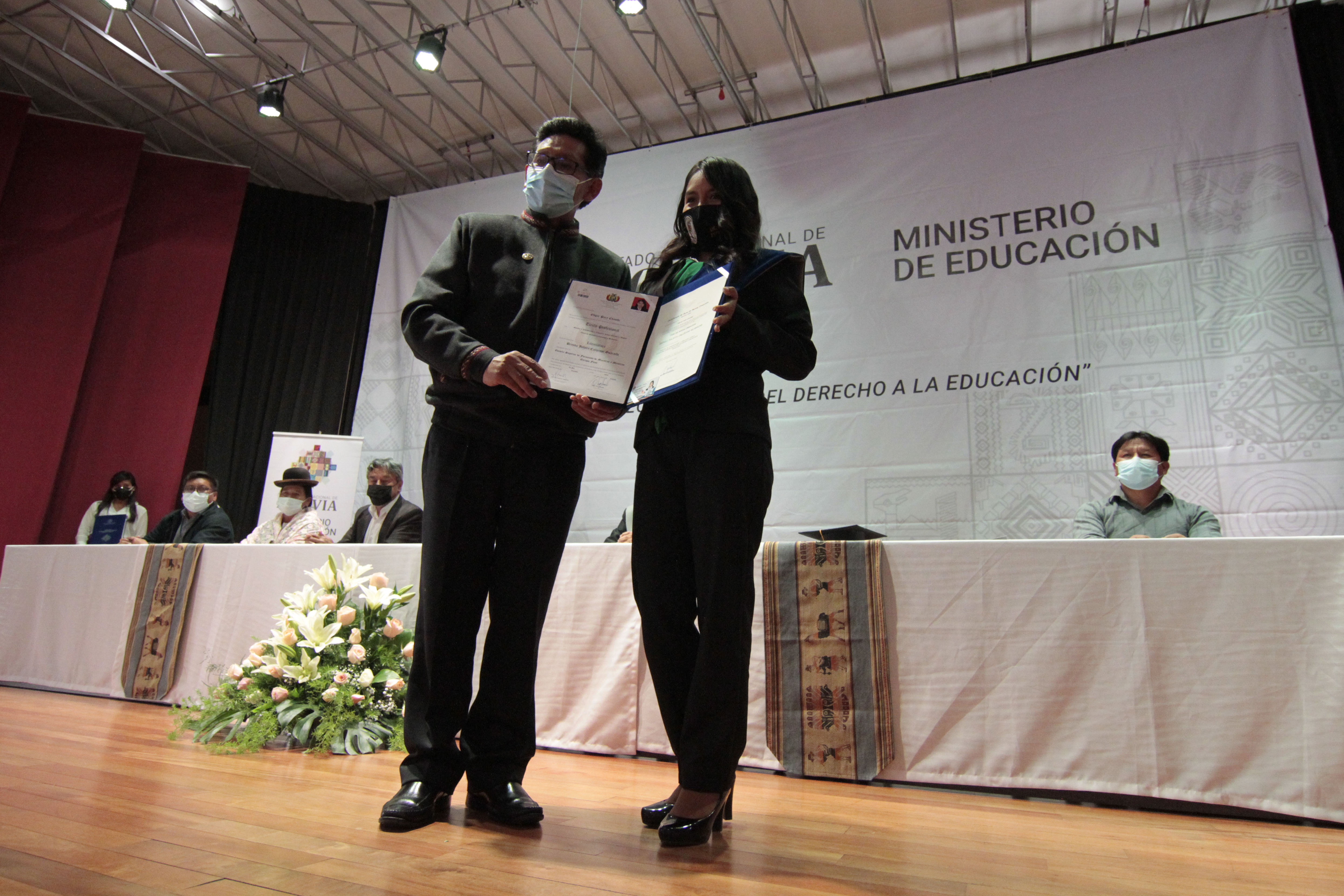 Educación entrega títulos profesionales e ítems a maestros destacados de las escuelas superiores del paísUsuario ABIGalería Fotográfica 14 Diciembre 2021 Visto: 7631ShareTwittearshare with Whatsappshare with Telegram FOTOS: ABI / JOSUE CORTEZAnteriorSiguiente