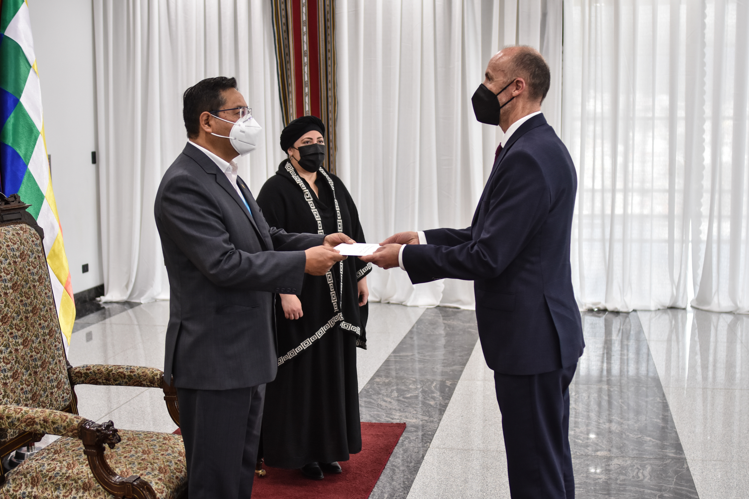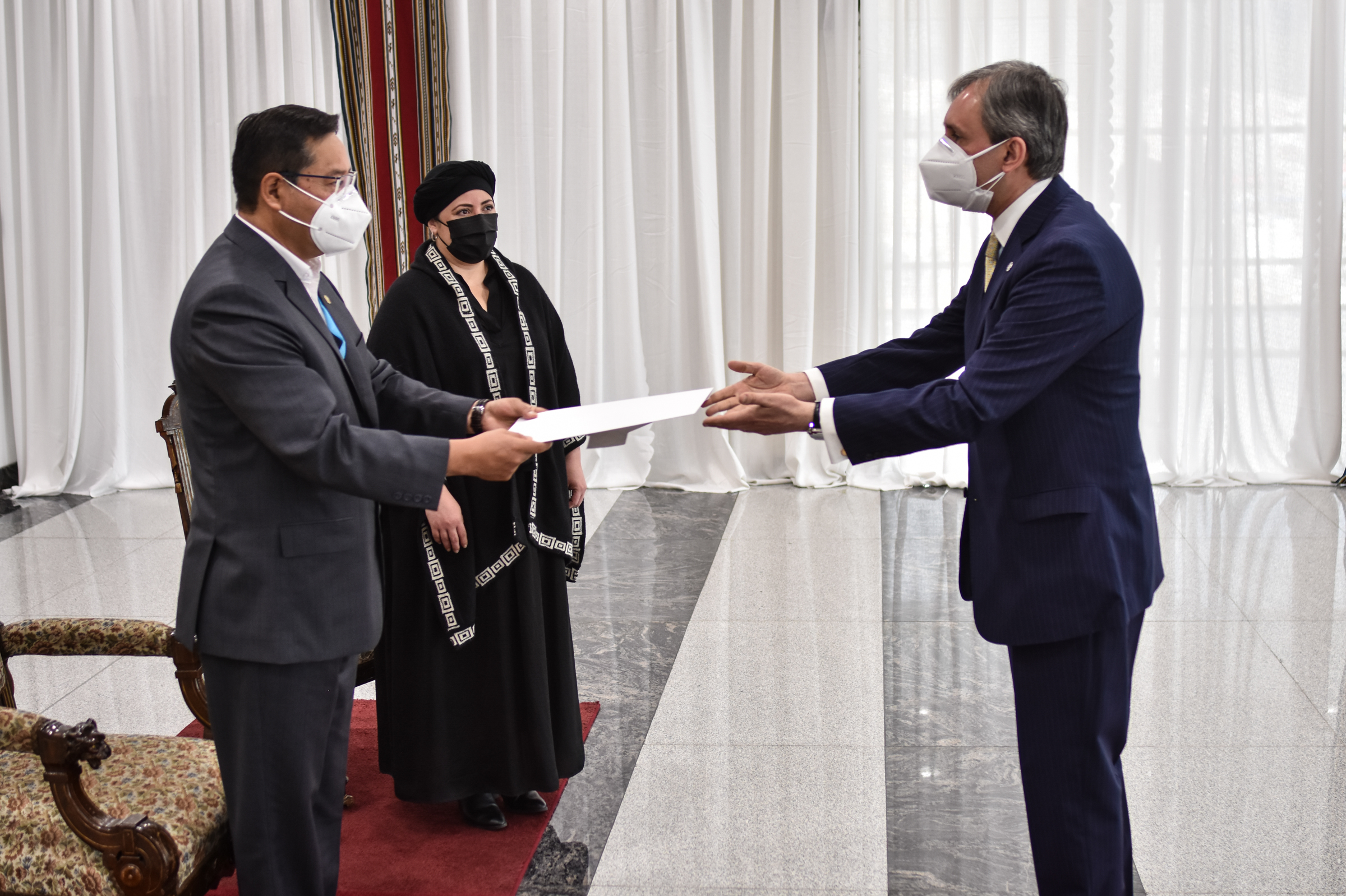 Presidente Arce recibe cartas credenciales de embajadores de China, España y UruguayABI USUARIO HISTORICOGalería Fotográfica 11 Enero 2021 Visto: 7548ShareTwittearshare with Whatsappshare with Telegram FOTOS / ABIAnteriorSiguiente