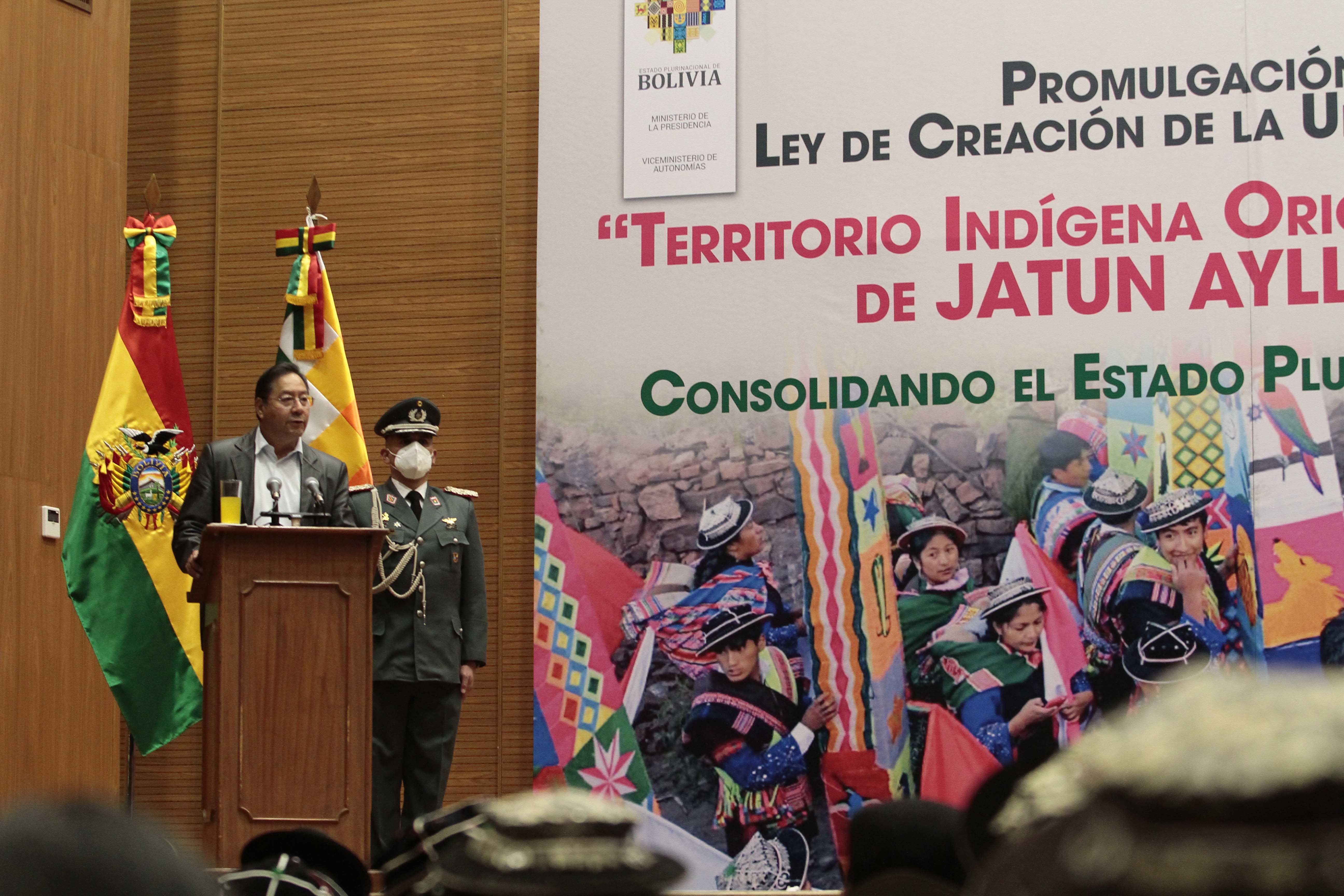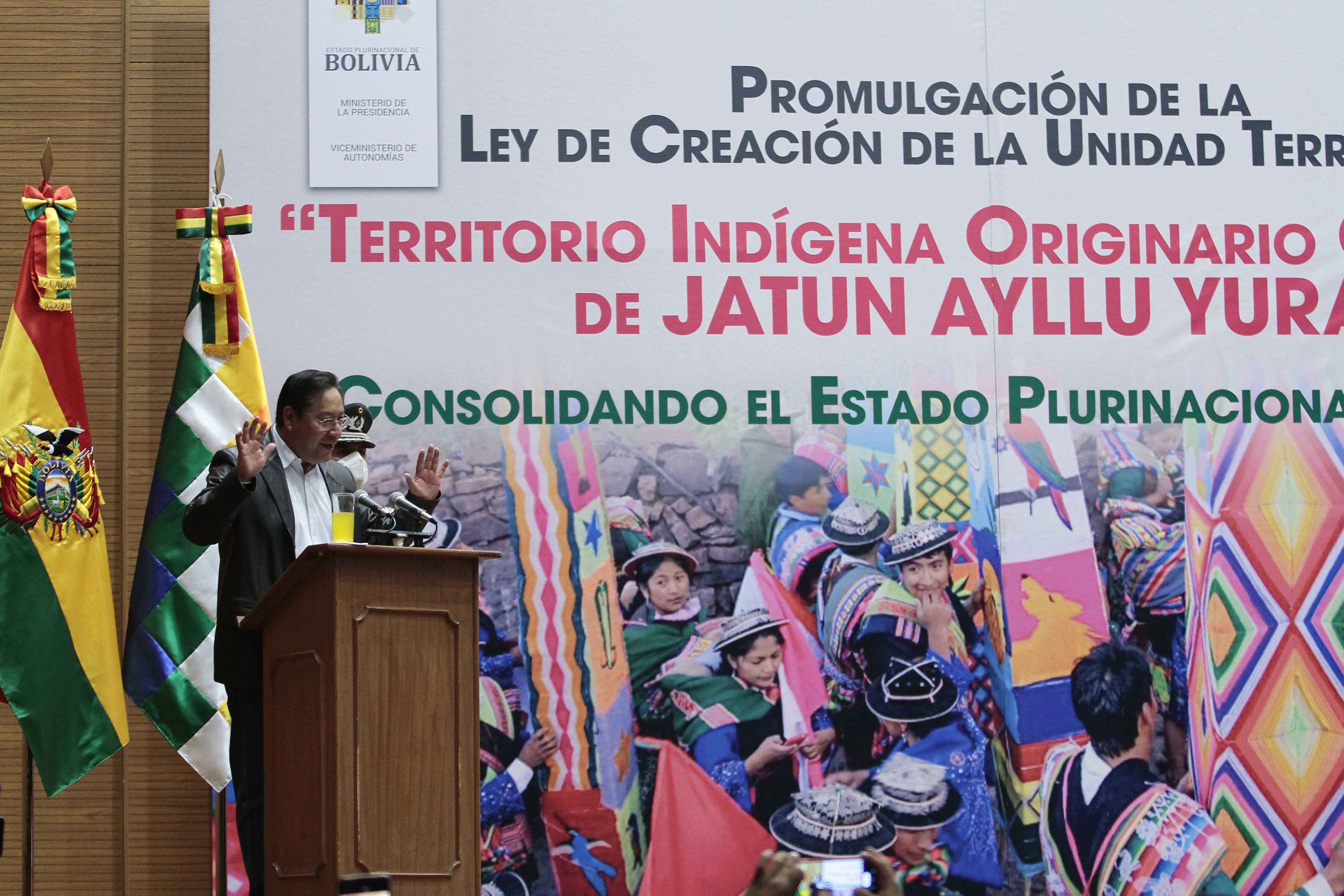 El Presidente del Estado Luis Arce promulga la Ley de Creación del Territorio Indígena Originario Campesino Jatun Ayllu Yura de PotosíUsuario ABIGalería Fotográfica 30 Junio 2022 Visto: 6546ShareTwittearshare with Whatsappshare with Telegram FOTOS /JOSUE CORTEZ /ABIAnteriorSiguiente