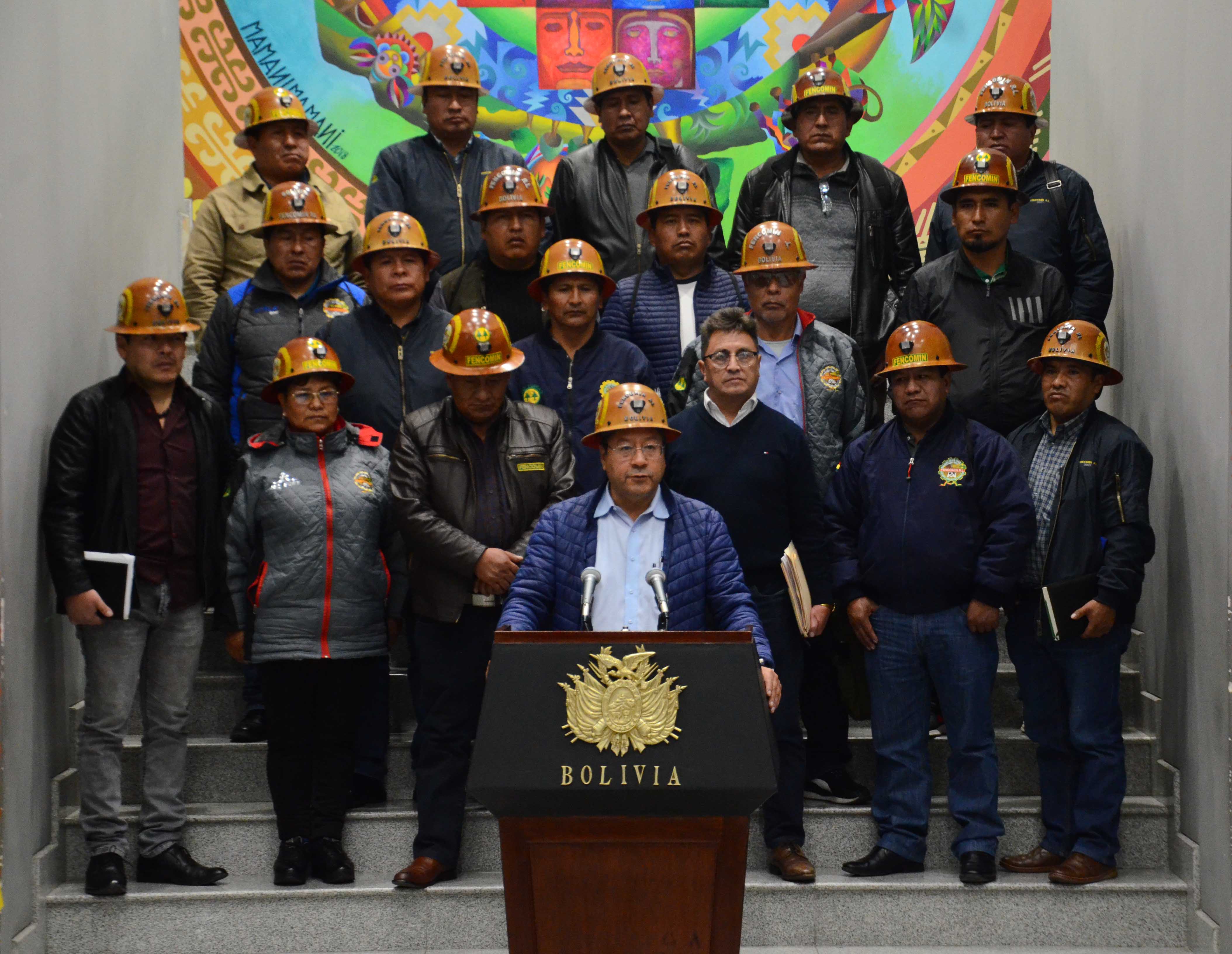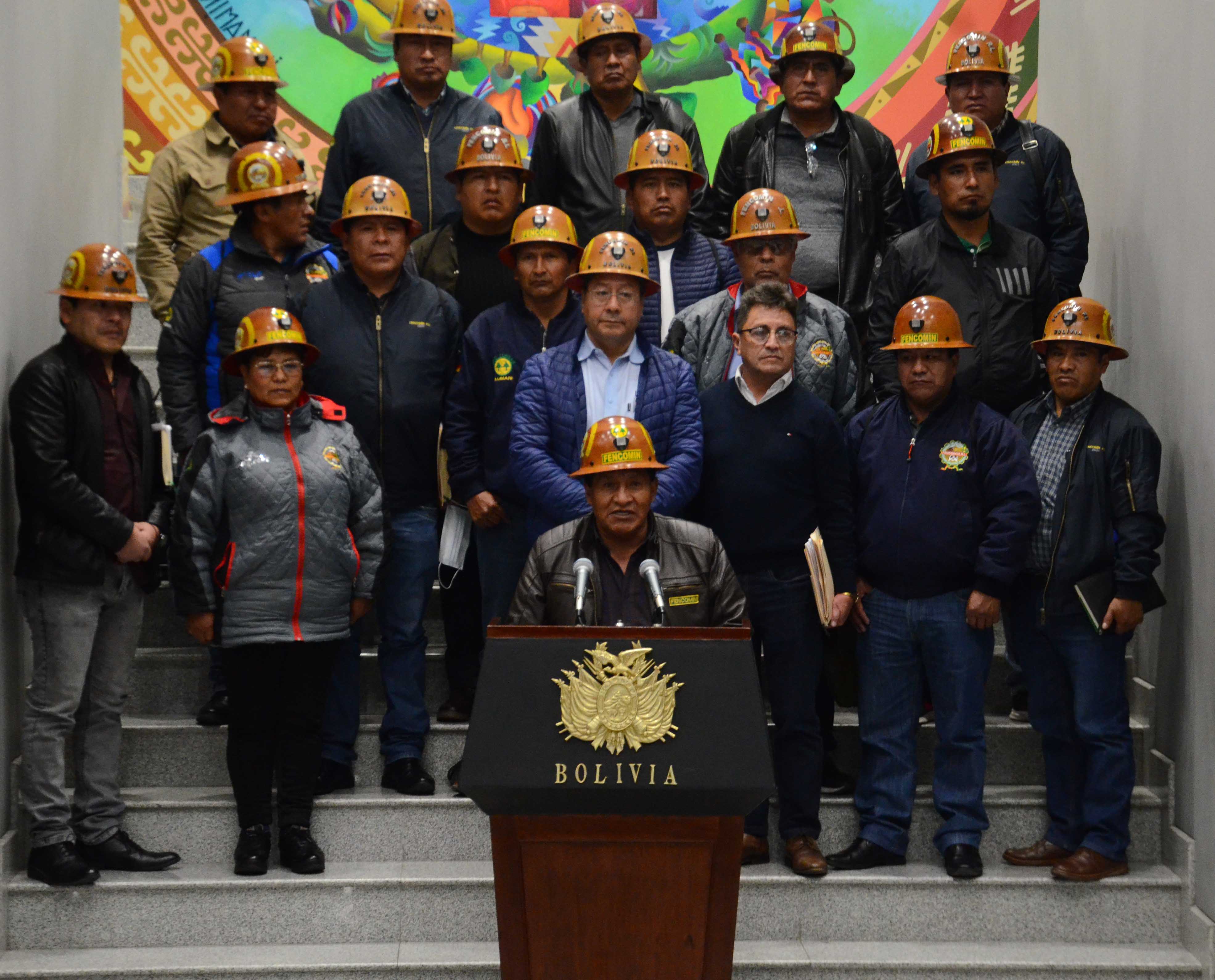 El presidente Luis Arce y la Federación Nacional de Cooperativas Mineras Fencomin, en conferencia de prensa sobre temas referentes al sectorUsuario ABIGalería Fotográfica 01 Julio 2022 Visto: 6970ShareTwittearshare with Whatsappshare with Telegram FOTOS: ABI / JOSUE CORTEZAnteriorSiguiente