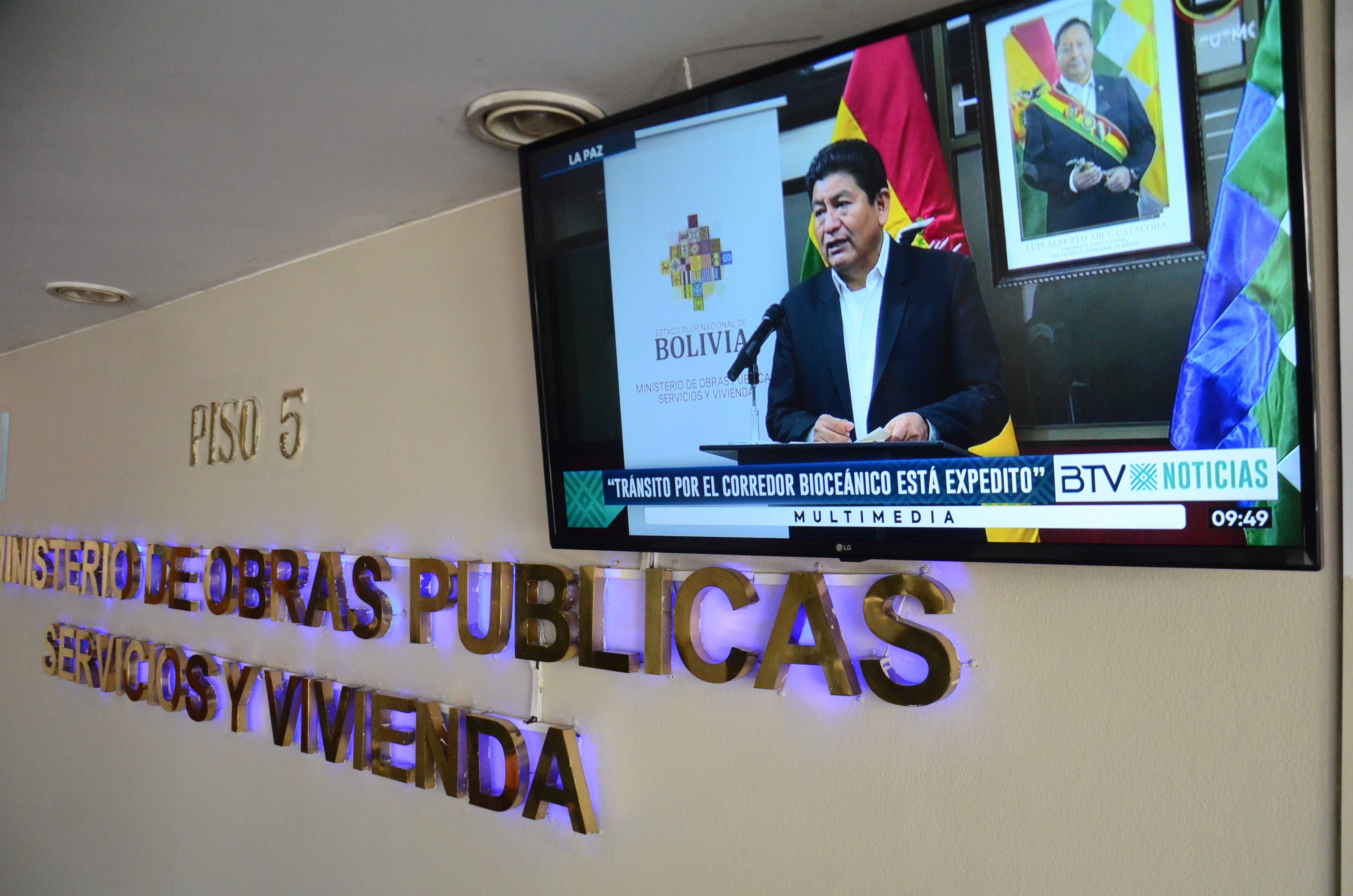 Ministro de Obras Públicas, Servicios y Vivienda, Edgar Montaño, Corredor Bioceánico Carretero está expedito tras acuerdo entre Gobierno y transportistasUsuario ABIGalería Fotográfica 06 Julio 2022 Visto: 6179ShareTwittearshare with Whatsappshare with Telegram FOTOS: ABI / JOSUE CORTEZAnteriorSiguiente