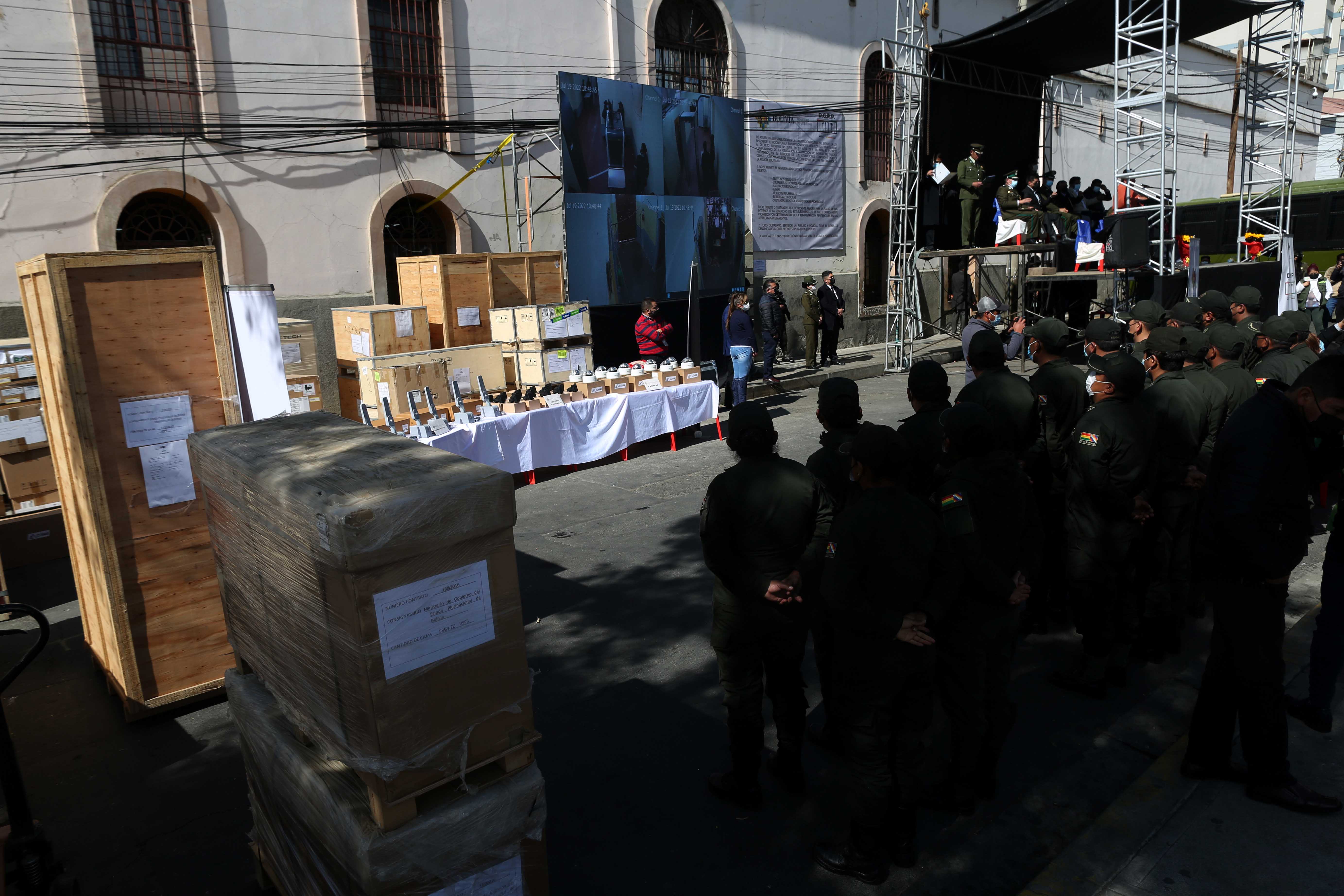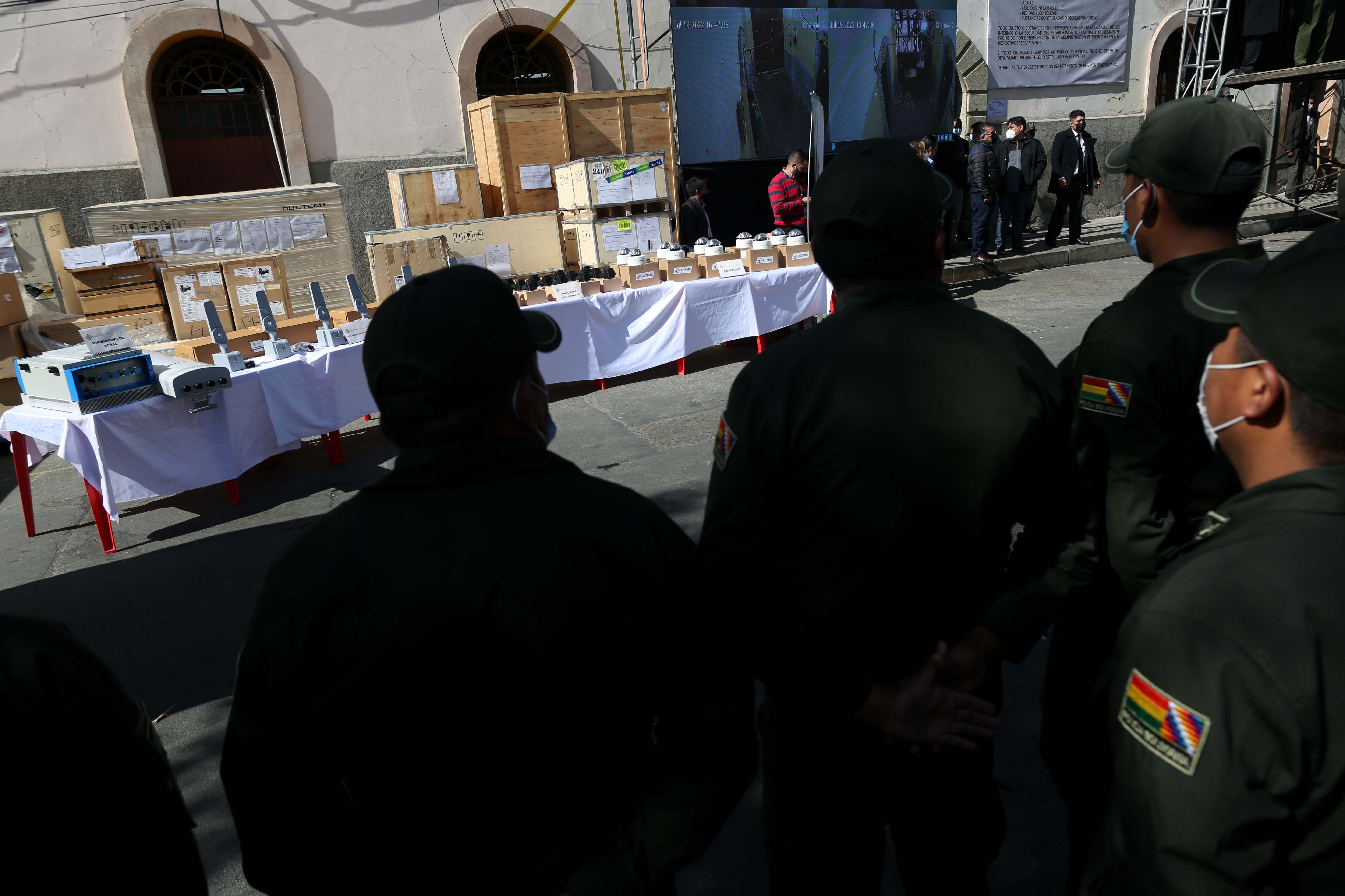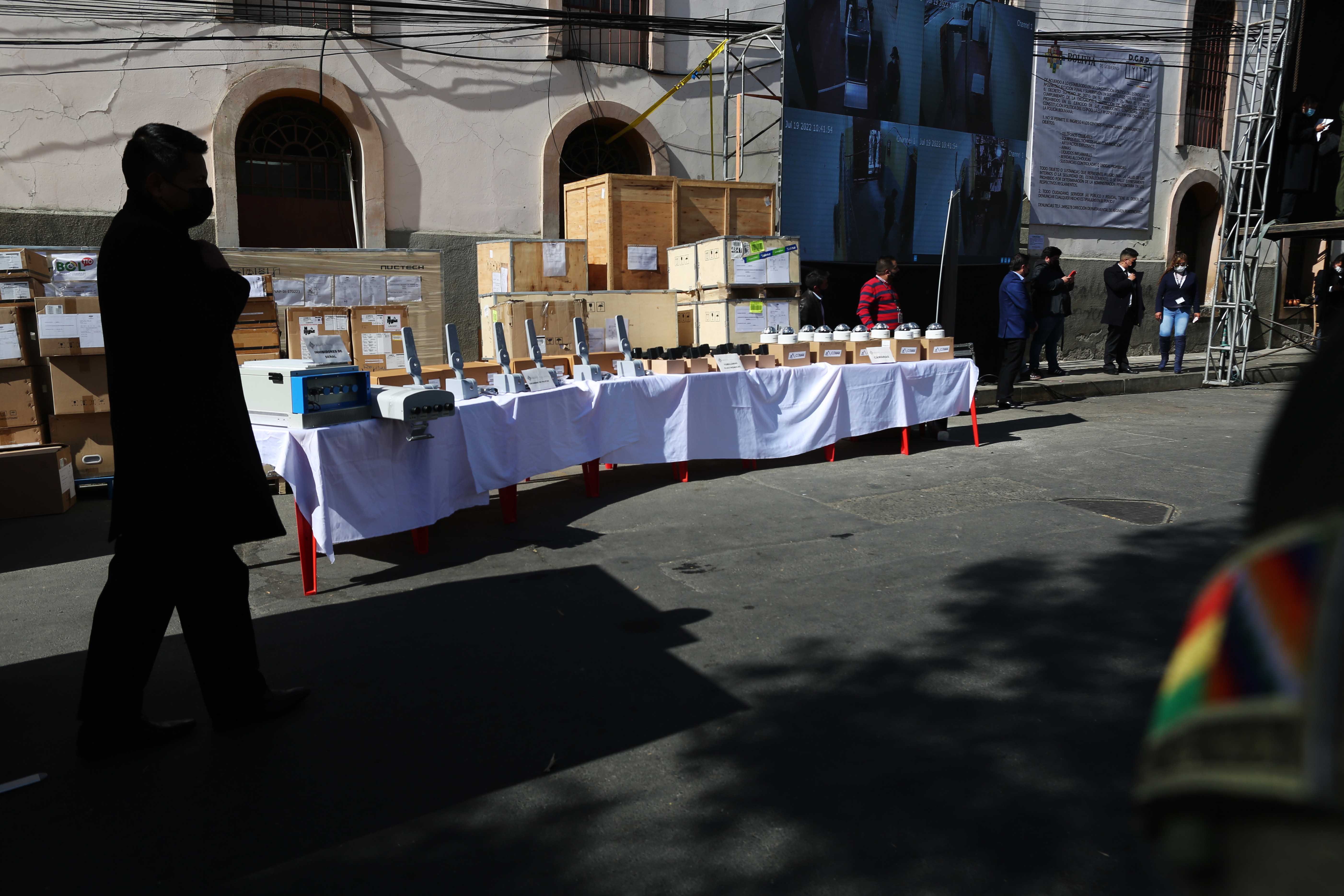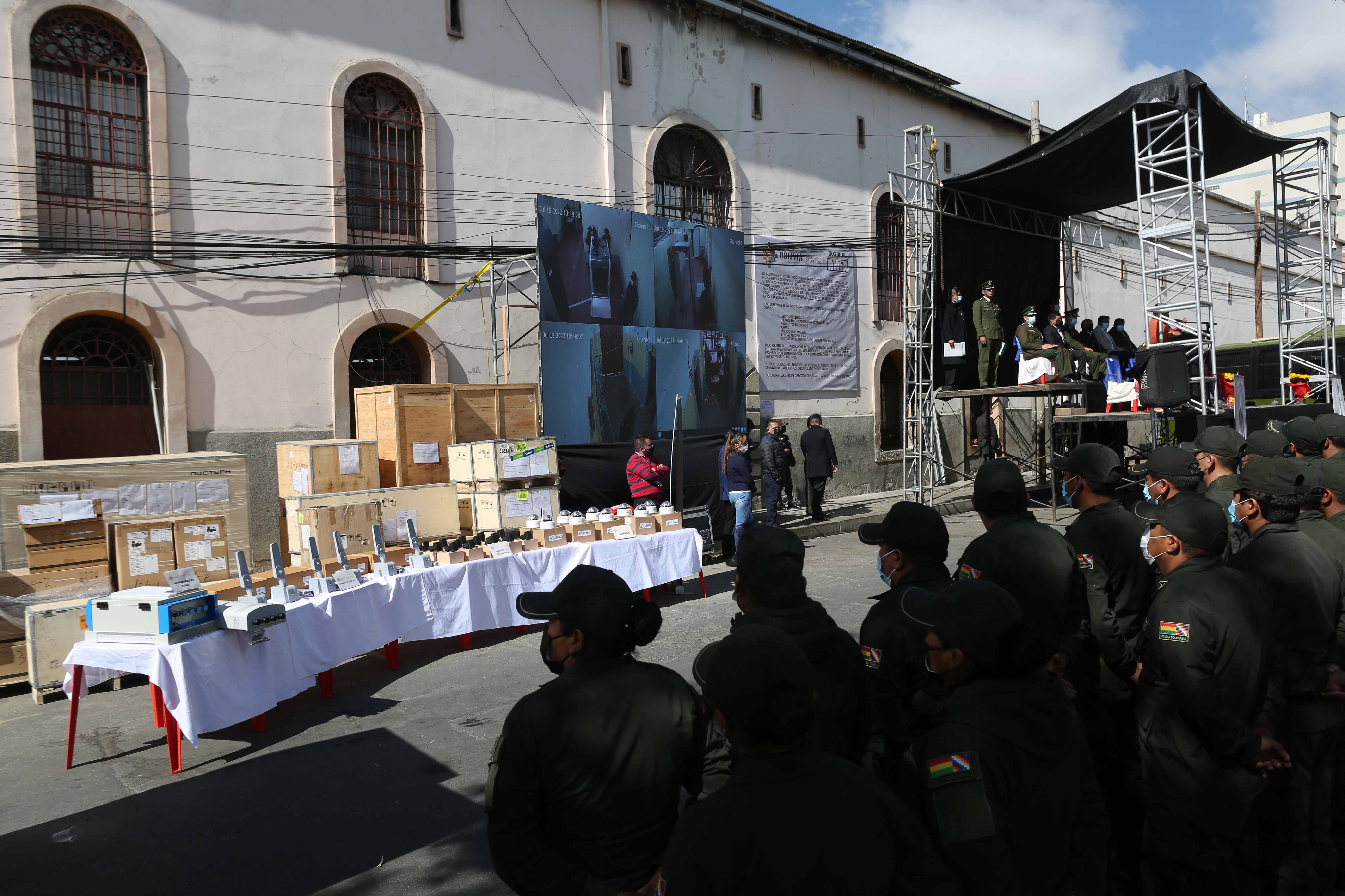 El ministro de Gobierno, Eduardo del Castillo, entregó equipamiento del proyecto Bol-110 para la seguridad penitenciaria nacional, en el penal de San Pedro, La Paz.Usuario ABIGalería Fotográfica 19 Julio 2022 Visto: 6374ShareTwittearshare with Whatsappshare with Telegram FOTOS:ABI/JOSUE CORTEZAnteriorSiguiente