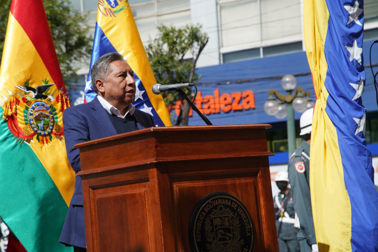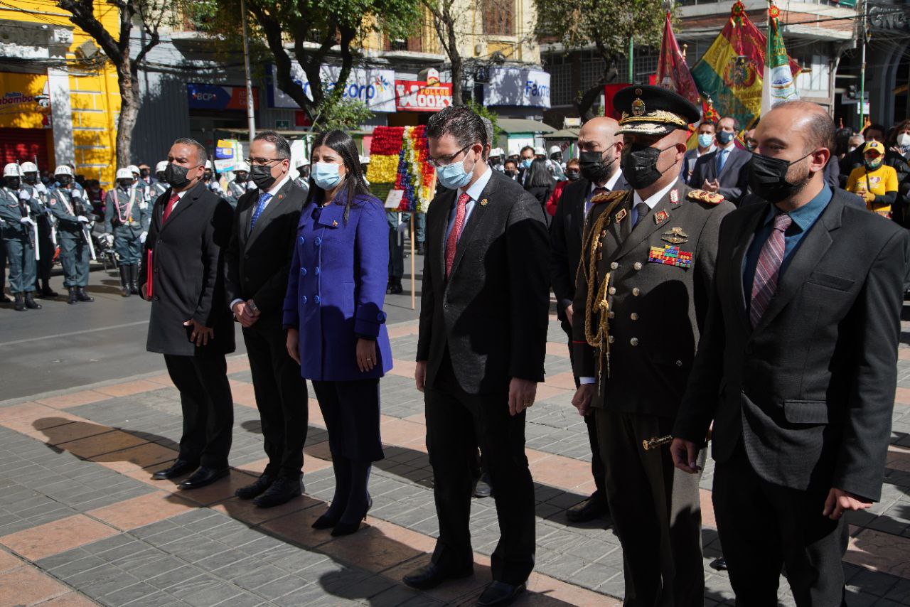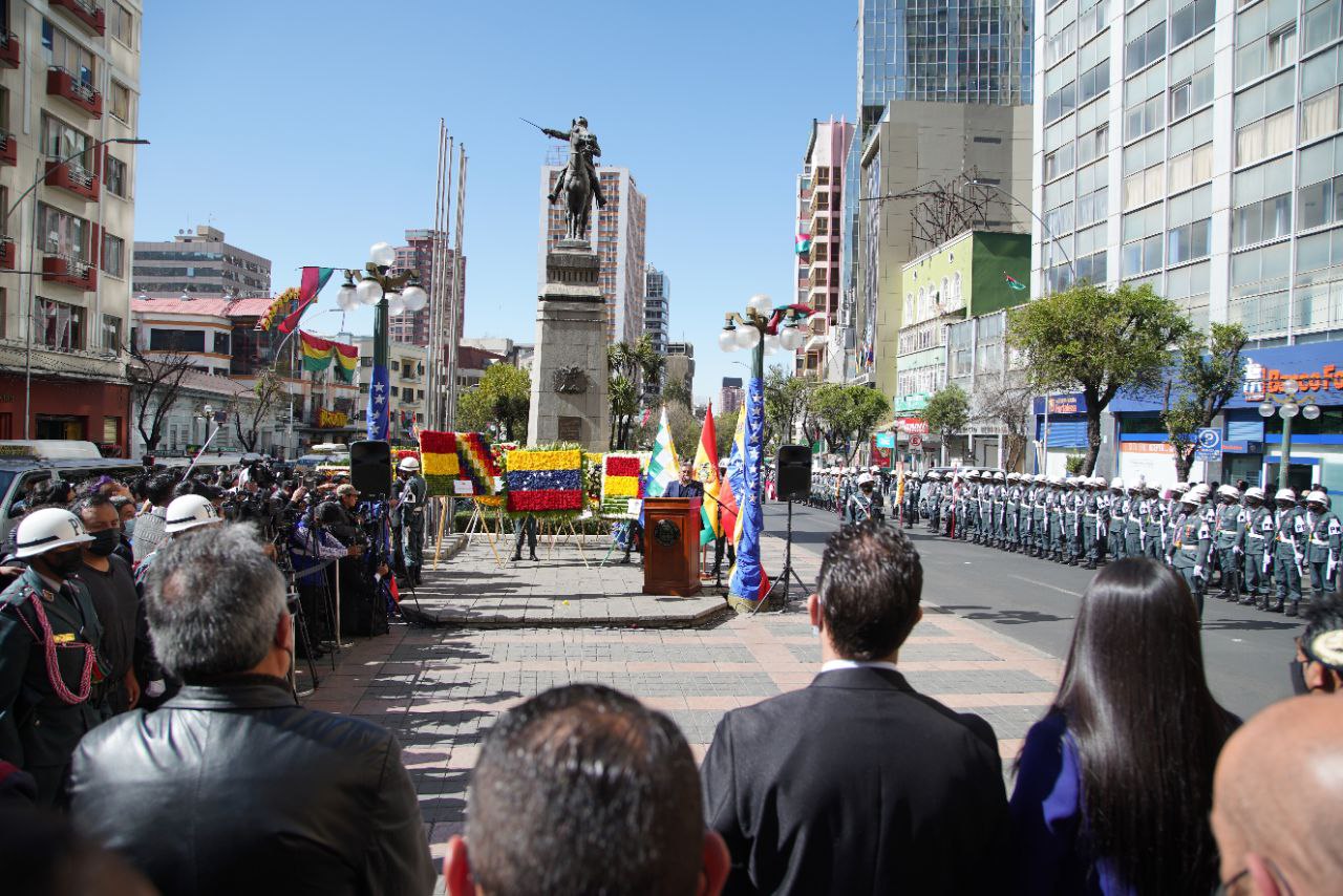 El canciller Rogelio Mayta y distintas autoridades conmemoran los 239 años del natalicio del libertador Simón Bolívar, en la plaza Venezuela de la ciudad de La Paz.Usuario ABIGalería Fotográfica 25 Julio 2022 Visto: 5565ShareTwittearshare with Whatsappshare with Telegram FOTOS:ABI/JORGE MAMANIAnteriorSiguiente