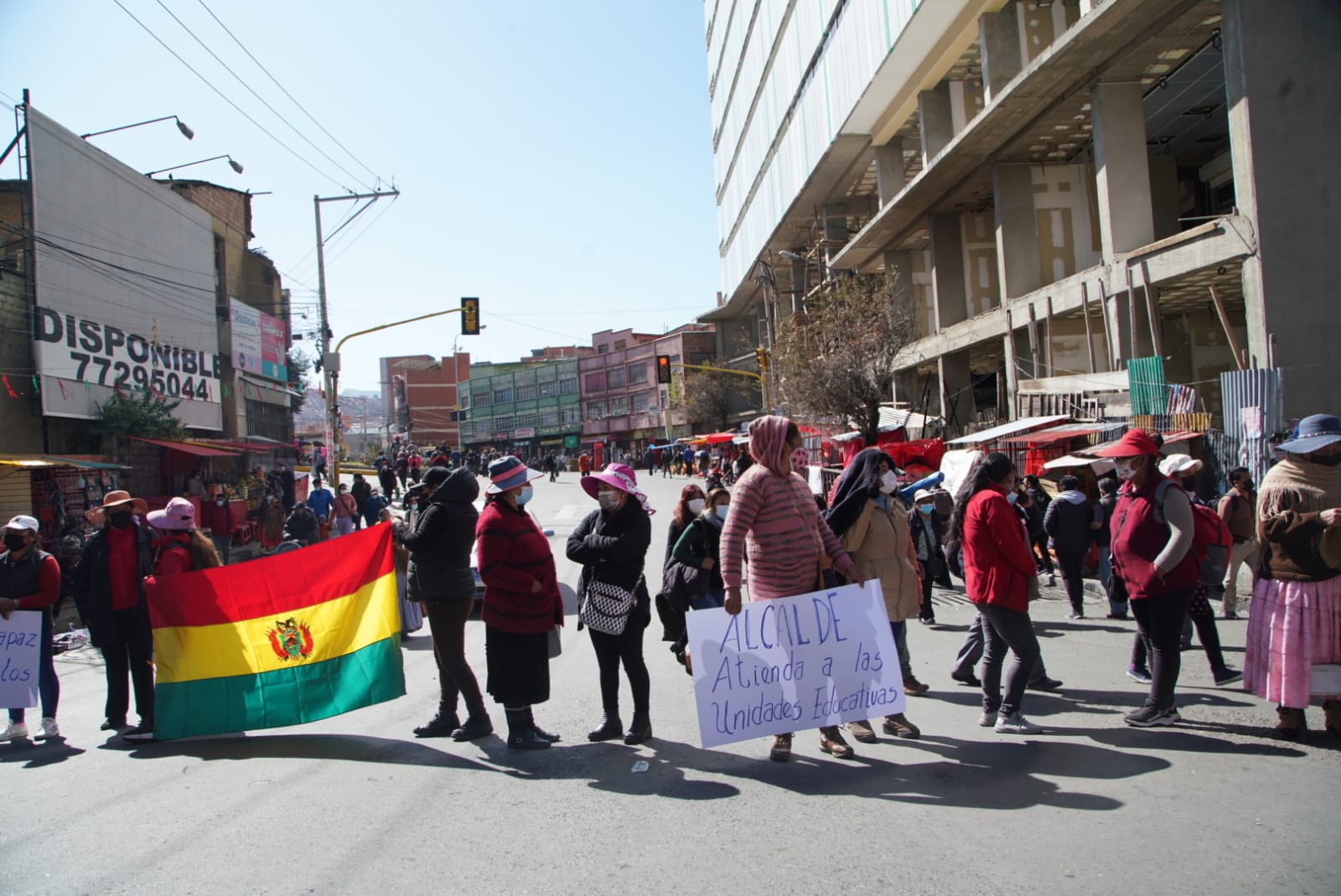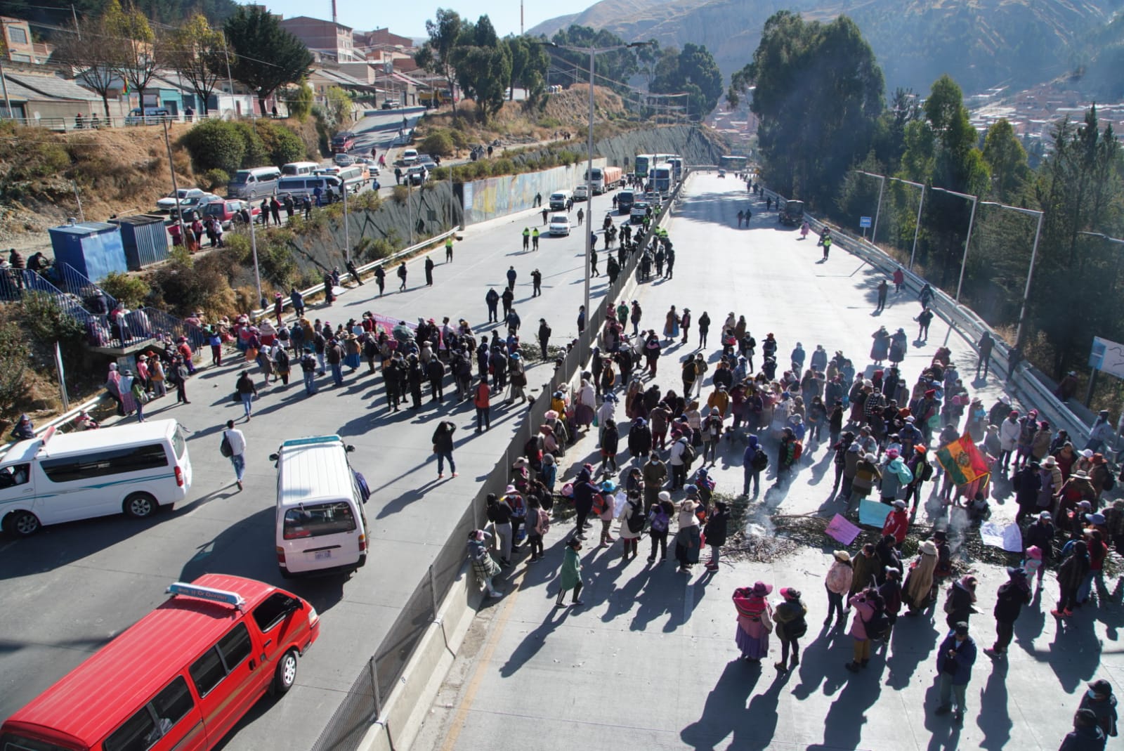 Padres y madres de familia del macrodistrito Max Paredes realizan un bloqueo en la autopista LaPaz – ElAlto, el nudo Vita y la Max Paredes pidendo al alcalde Iván Arias realizar mantenimiento a las unidades educativas