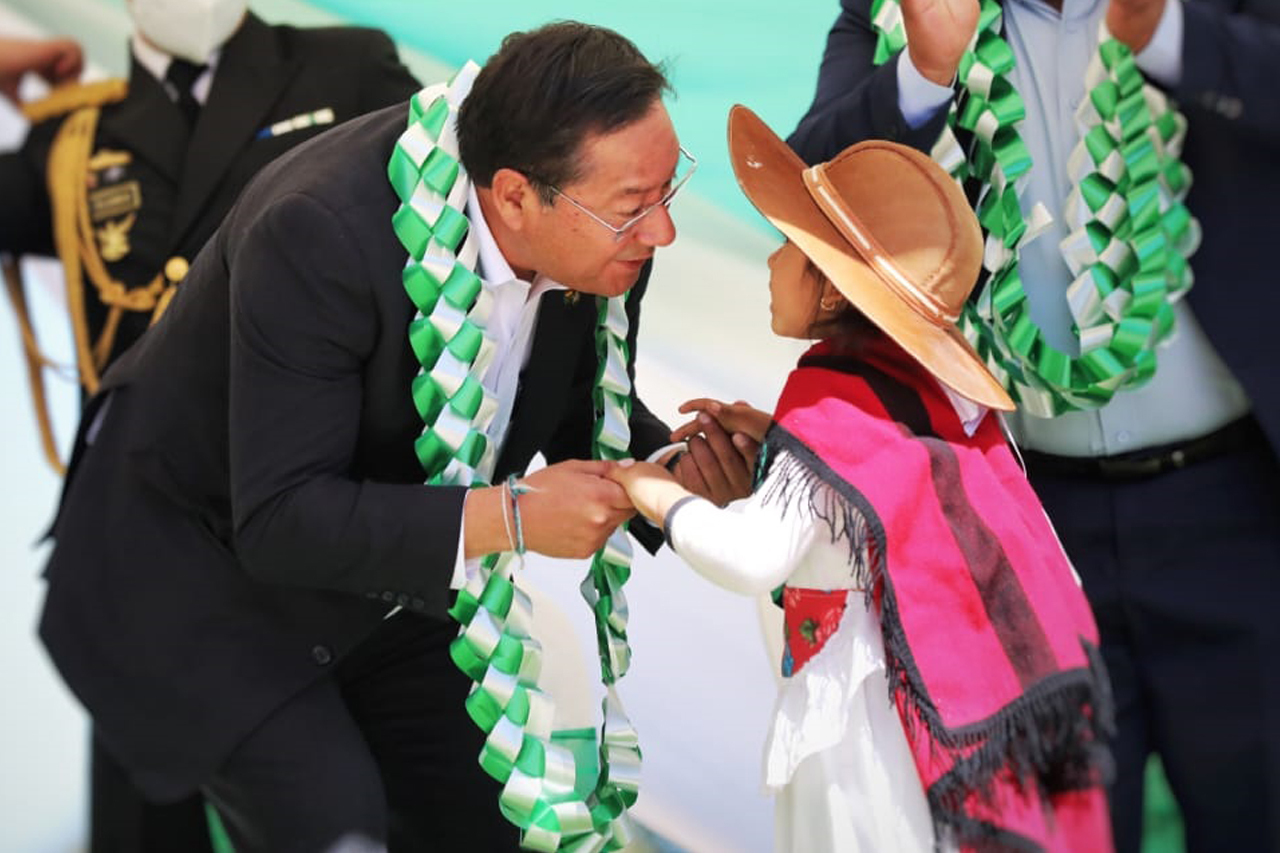 El Presidente Luis Arce participa en Yacuiba Tarija de la firma de convenio para equipar el Hospital de Tercer Nivel "Fray Quebracho" de YacuibaEnzo De LucaGalería Fotográfica 11 Agosto 2022 Visto: 5693ShareTwittearshare with Whatsappshare with Telegram Fotos:Comunicación PresidencialAnteriorSiguiente