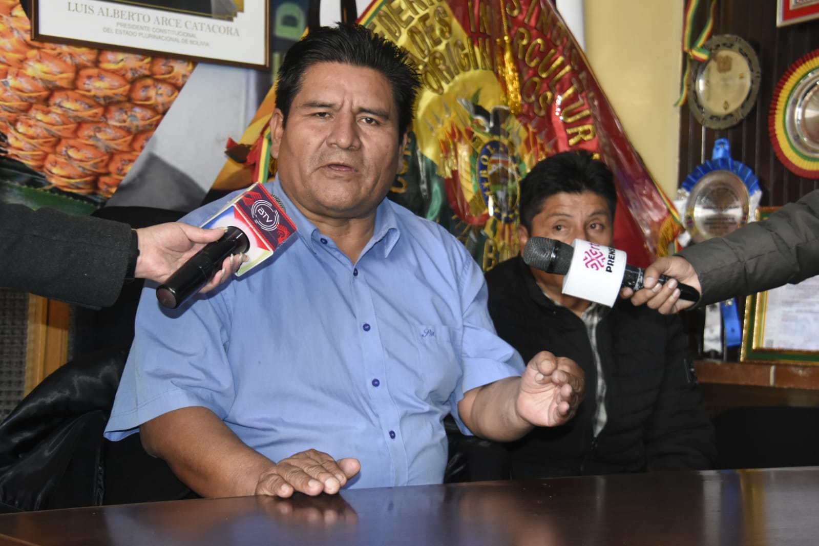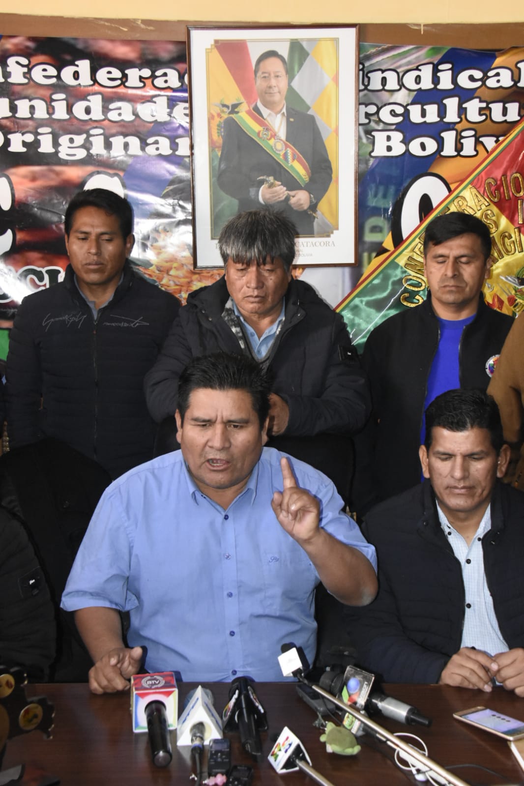 Secretario ejecutivo de la Confederación Sindical de Comunidades Interculturales de Bolivia convocan a una gran marcha para el 25 de agosto en respaldo al Gobierno NacionalEnzo De LucaGalería Fotográfica 17 Agosto 2022 Visto: 5597ShareTwittearshare with Whatsappshare with Telegram Fotos Gonzalo JallasiAnteriorSiguiente