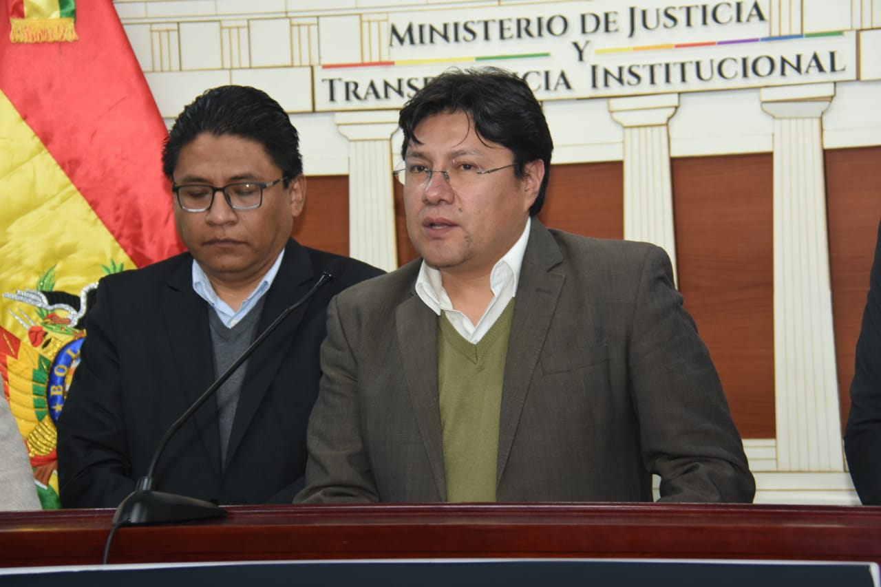 Ministro de Justicia, Iván Lima y el presidente del Consejo de la Magistratura, Marvin Molina en conferencia de prensaEnzo De LucaGalería Fotográfica 26 Agosto 2022 Visto: 8096ShareTwittearshare with Whatsappshare with Telegram Fotos Gonzalo JallasiAnteriorSiguiente