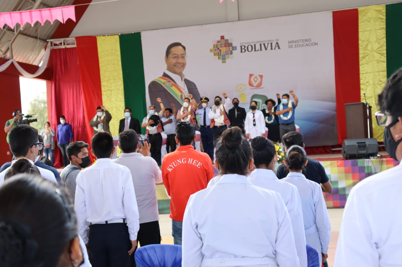 Entrega de tres unidades educativas en Quillacollo, con presencia del presidente del Estado Plurinacional de Bolivia Luis Arce CatacoraEnzo De LucaGalería Fotográfica 03 Septiembre 2022 Visto: 7539ShareTwittearshare with Whatsappshare with Telegram Fotos: Comunicación PresidencialAnteriorSiguiente