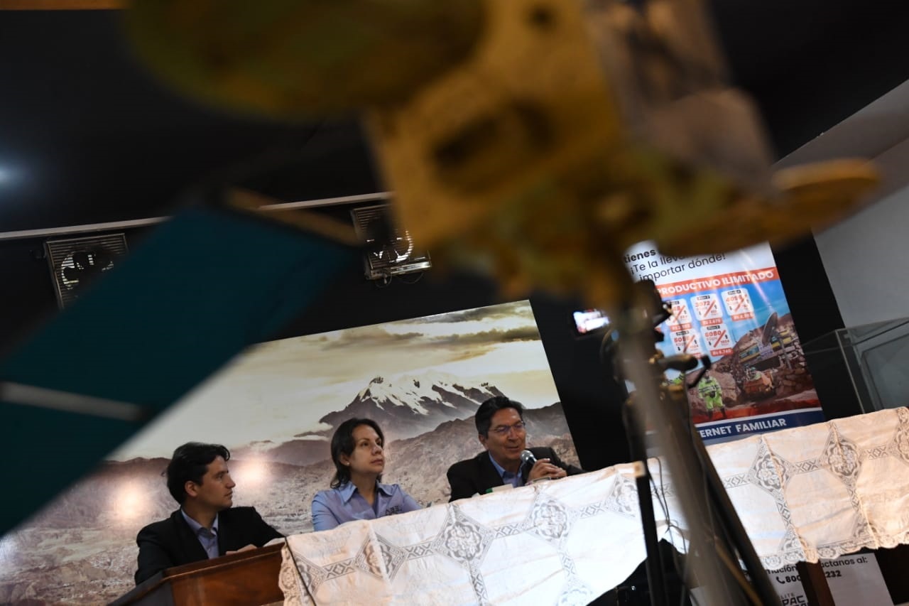 El Director Ejecutivo Ing. Ivan Zambrana Cruz en conferencia de prensa sobre las actividades en la semana mundial del espacio en Bolivia Enzo De LucaGalería Fotográfica 03 Octubre 2022 Visto: 5393ShareTwittearshare with Whatsappshare with Telegram Fotos: Josué CortézAnteriorSiguiente