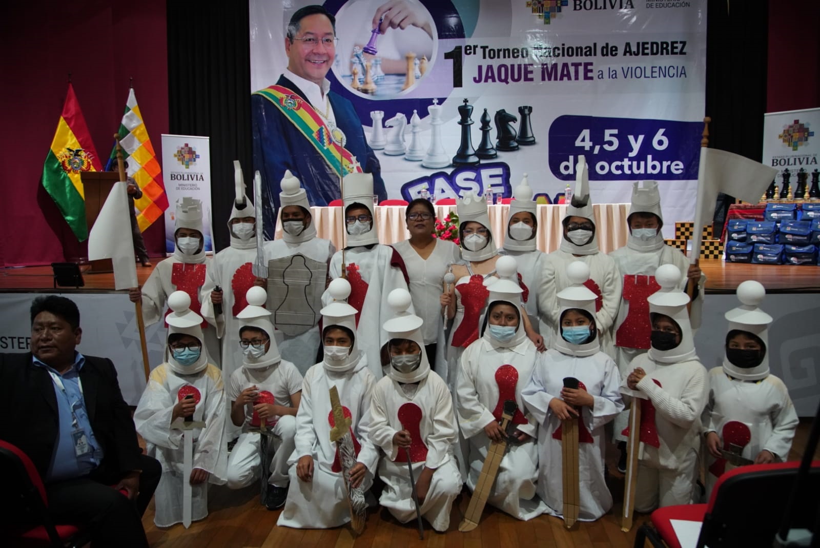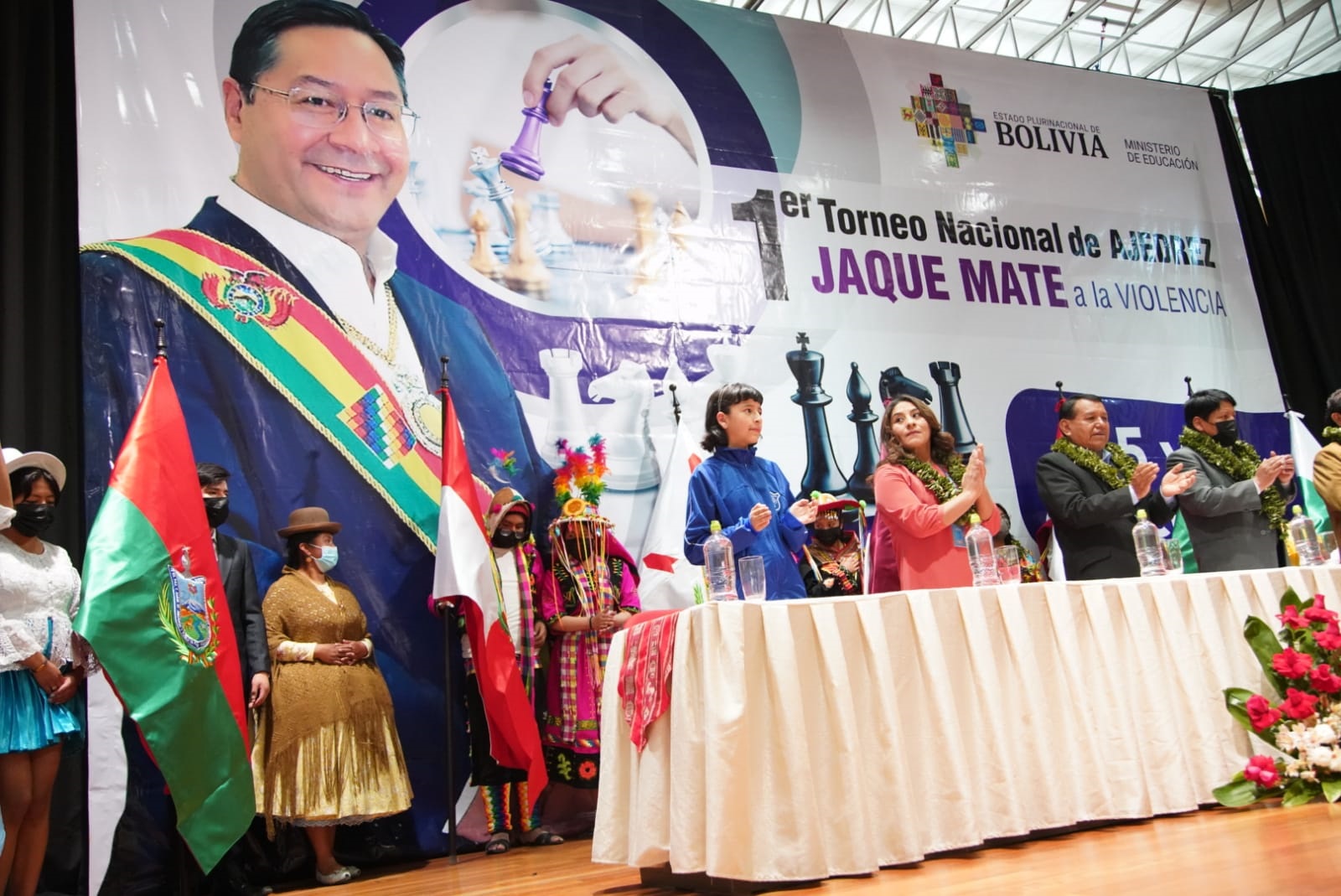 Ministerio de Educación, inaugura el 1er. Torneo Nacional de Ajedrez “Jaque mate a la violencia” en su fase nacional.Enzo De LucaGalería Fotográfica 04 Octubre 2022 Visto: 5462ShareTwittearshare with Whatsappshare with Telegram Fotos: Jorge MamaniAnteriorSiguiente
