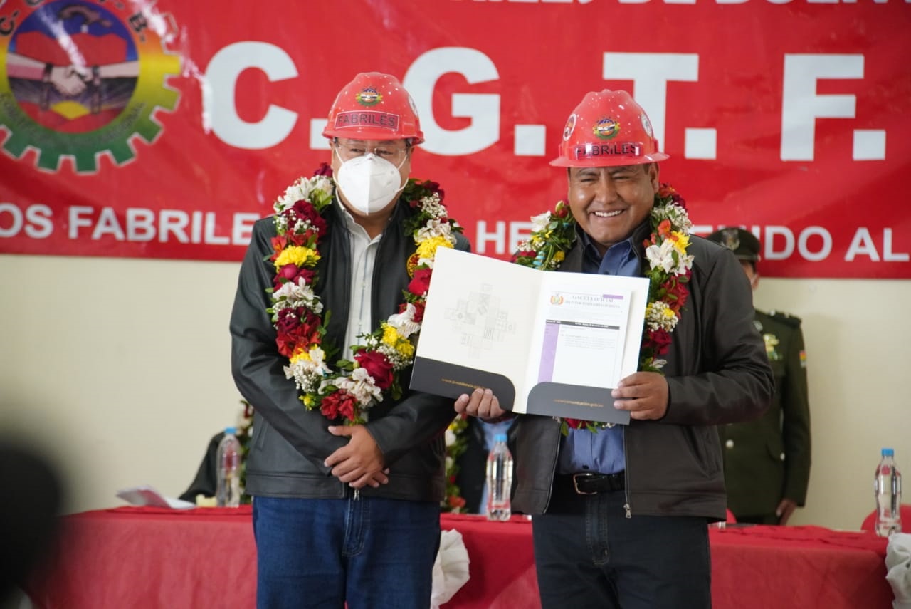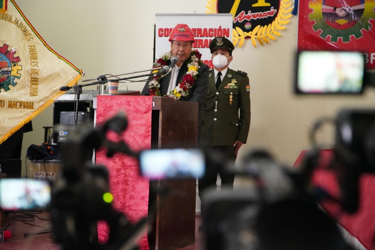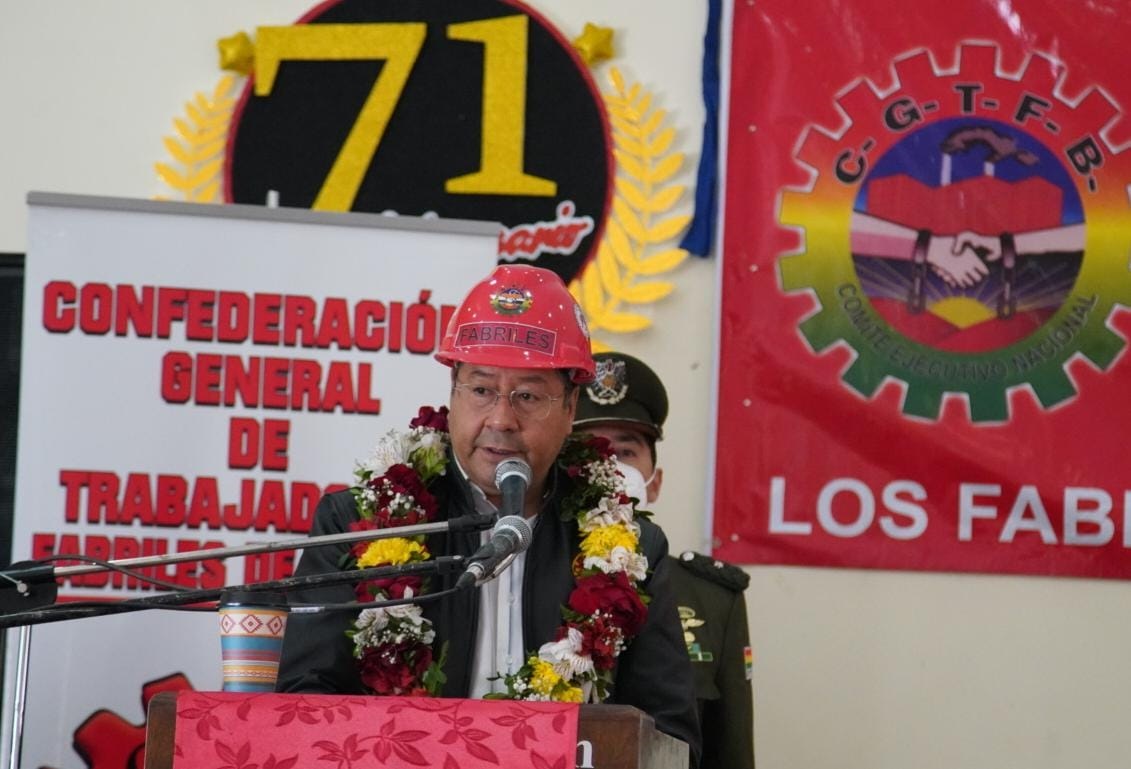 El presidente del Estado Luis Arce, participa del acto de conmemoración por los 71 años de fundación de la Confederación General de Trabajadores Fabriles de Bolivia CGTFBEnzo De LucaGalería Fotográfica 07 Octubre 2022 Visto: 5867ShareTwittearshare with Whatsappshare with Telegram Fotos: Jorge MamaniAnteriorSiguiente