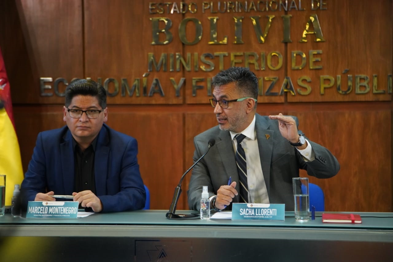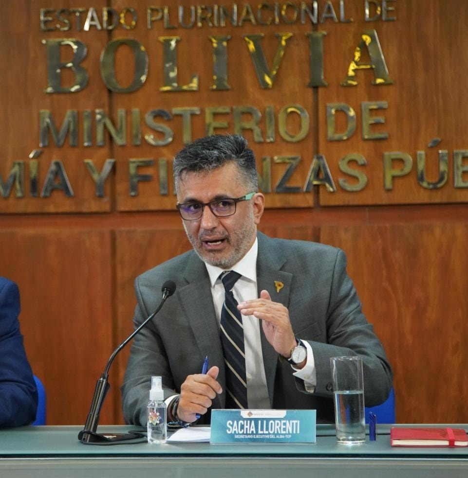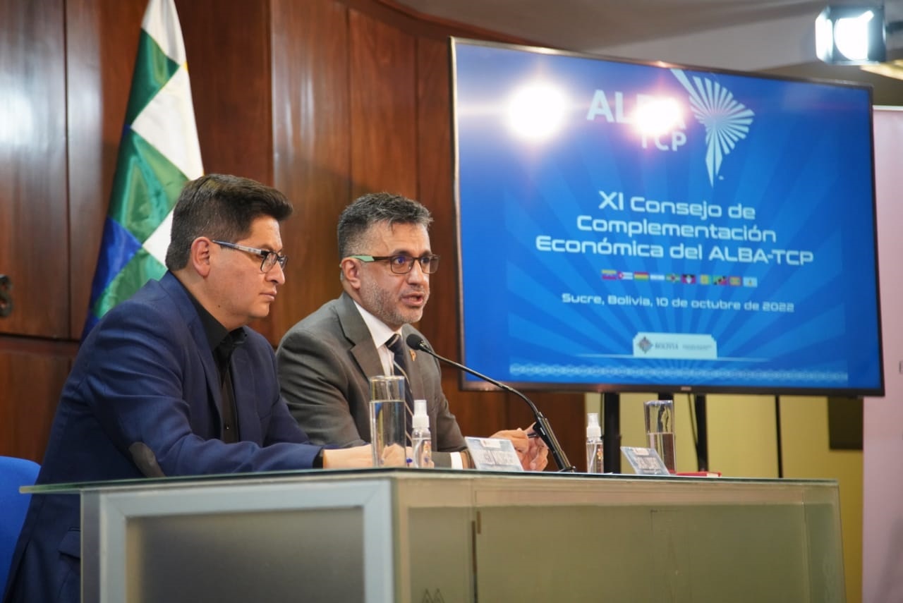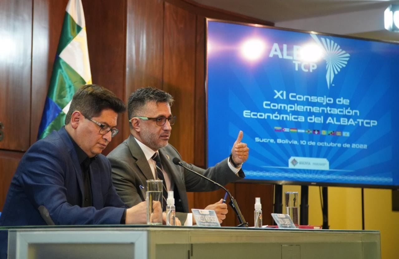 Ministro de Economía, Marcelo Montenegro, y Sacha Llorenti, Secretario Ejecutivo del ALBA-TCP, anuncian su XI Reunión en Sucre Enzo De LucaGalería Fotográfica 07 Octubre 2022 Visto: 5963ShareTwittearshare with Whatsappshare with Telegram Fotos: Jorge MamaniAnteriorSiguiente