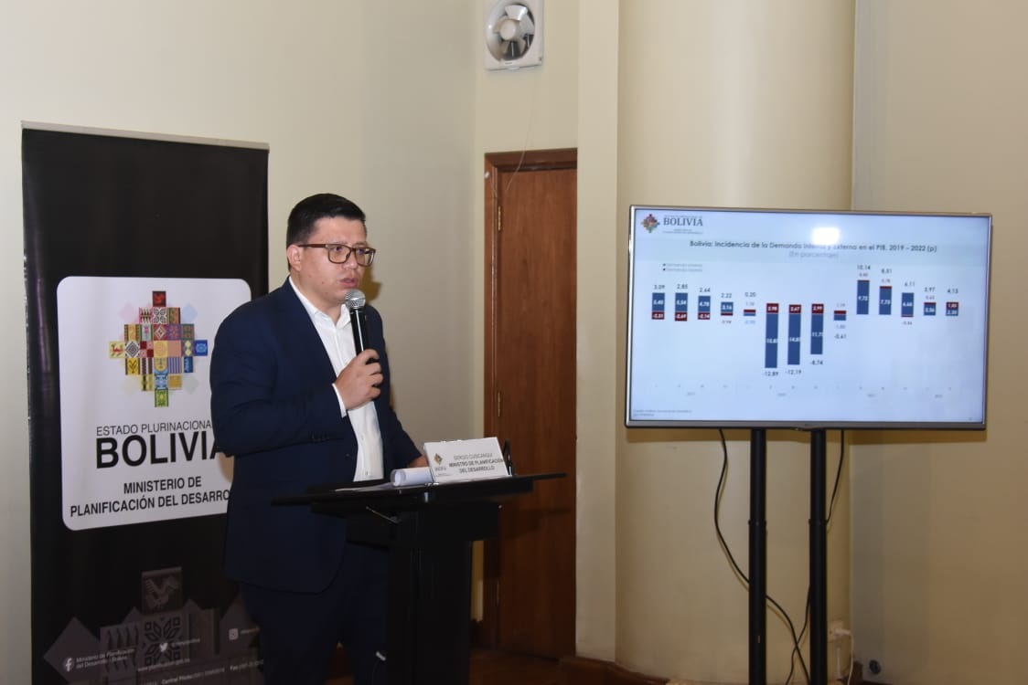 Ministro de Planificación del Desarrollo, Sergio Cusicanqui da un informe sobre Producto Interno BrutoEnzo De LucaGalería Fotográfica 19 Octubre 2022 Visto: 3063ShareTwittearshare with Whatsappshare with Telegram Fotos /Schuett VICECOMAnteriorSiguiente