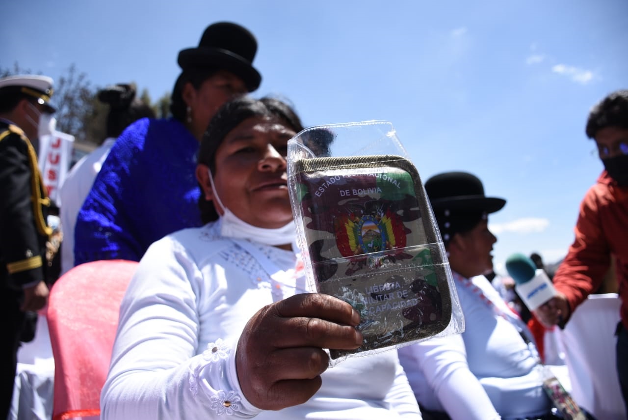 El Gobierno entrega Libretas del Servicio Militar a más de 200 personas con discapacidad de los municipios de Huarina, Sica Sica, Patacamaya, El Alto y La PazEnzo De LucaGalería Fotográfica 20 Octubre 2022 Visto: 2963ShareTwittearshare with Whatsappshare with Telegram Fotos: Josué Cortéz / VICECOMAnteriorSiguiente
