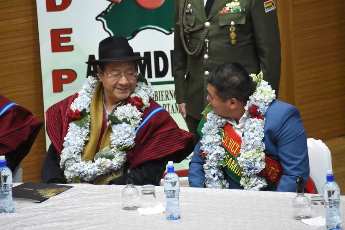 Presidente Luis Arce Catacora junto al vicepresidente, David Choquehuanca participan del 6to. Aniversario de la Asociación de Gobiernos Municipales de La Paz (Agamdepaz).Enzo De LucaGalería Fotográfica 25 Octubre 2022 Visto: 3980ShareTwittearshare with Whatsappshare with Telegram Fotos: Jallasi/Schuett/CortézAnteriorSiguiente