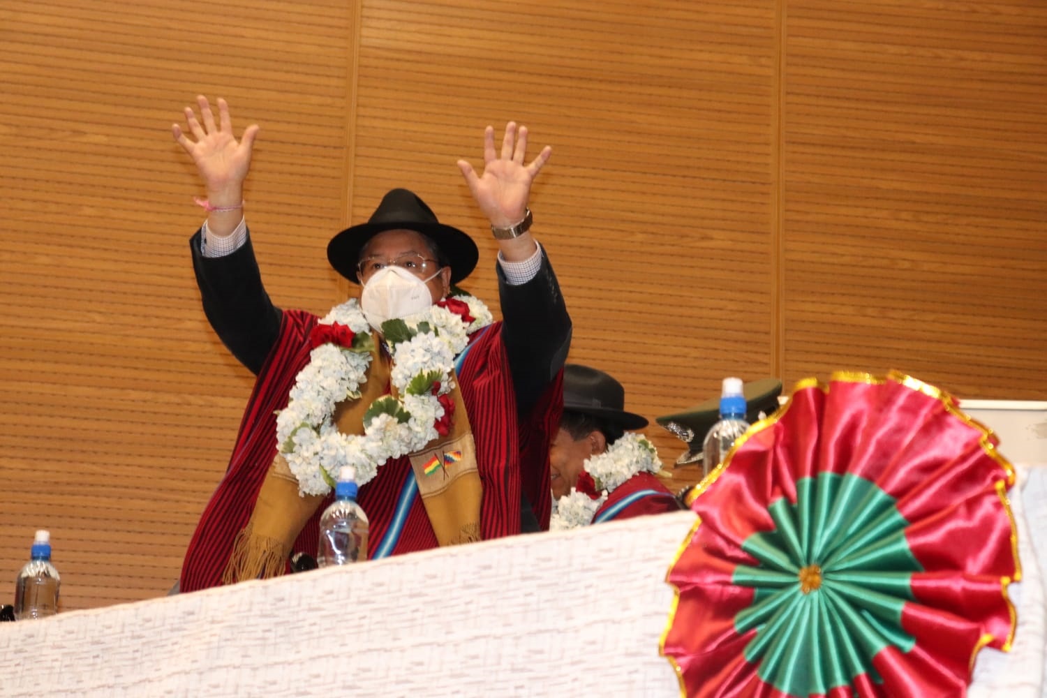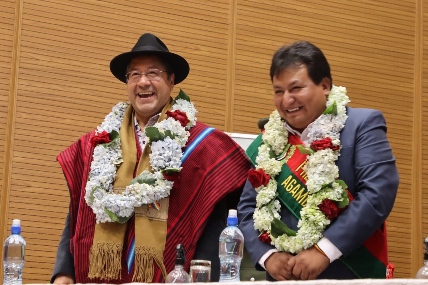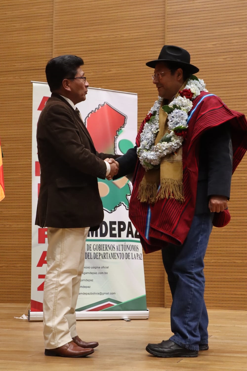 Presidente Luis Arce Catacora junto al vicepresidente, David Choquehuanca participan del 6to. Aniversario de la Asociación de Gobiernos Municipales de La Paz (Agamdepaz). 2Enzo De LucaGalería Fotográfica 25 Octubre 2022 Visto: 8187ShareTwittearshare with Whatsappshare with Telegram AnteriorSiguiente