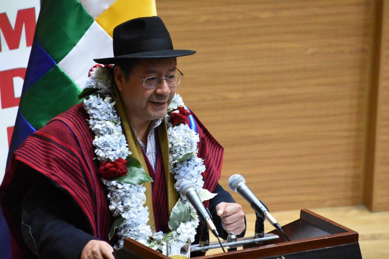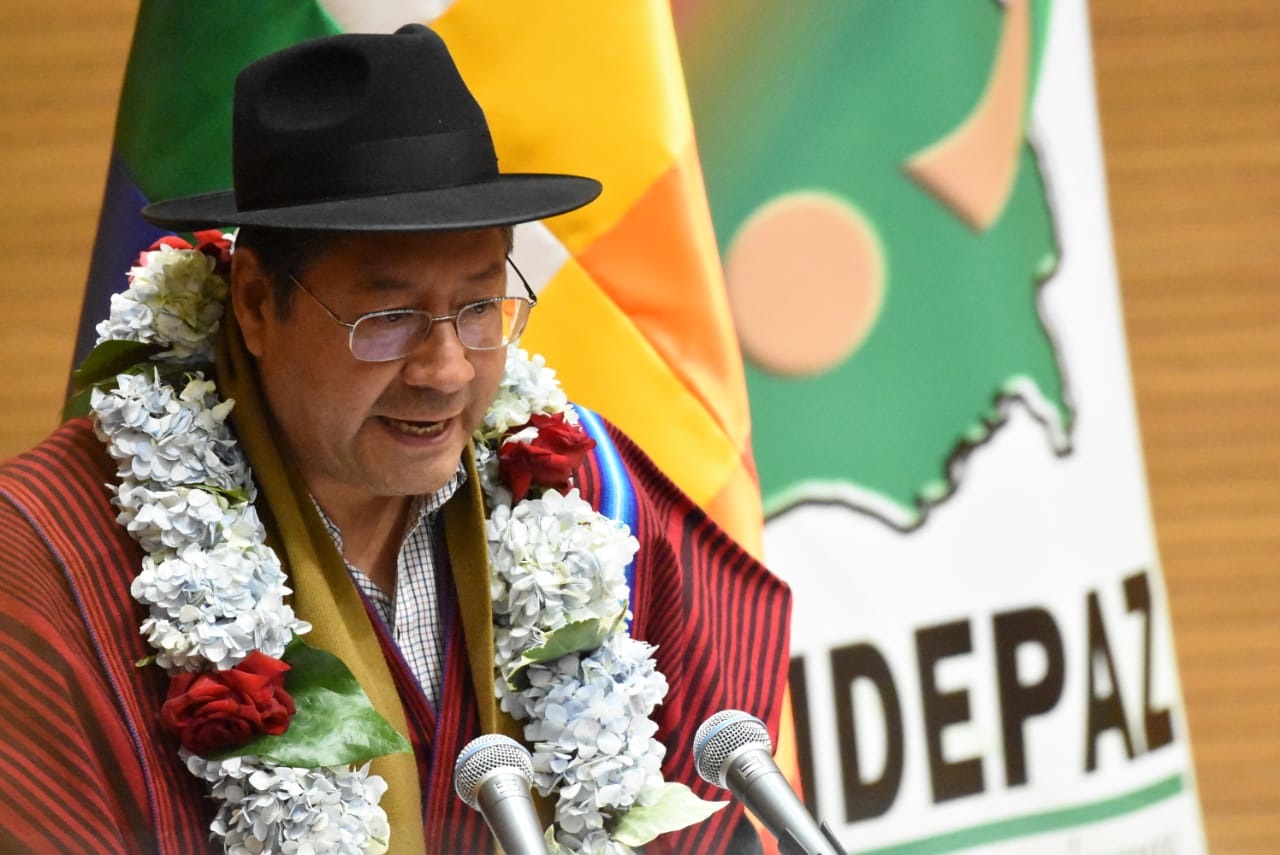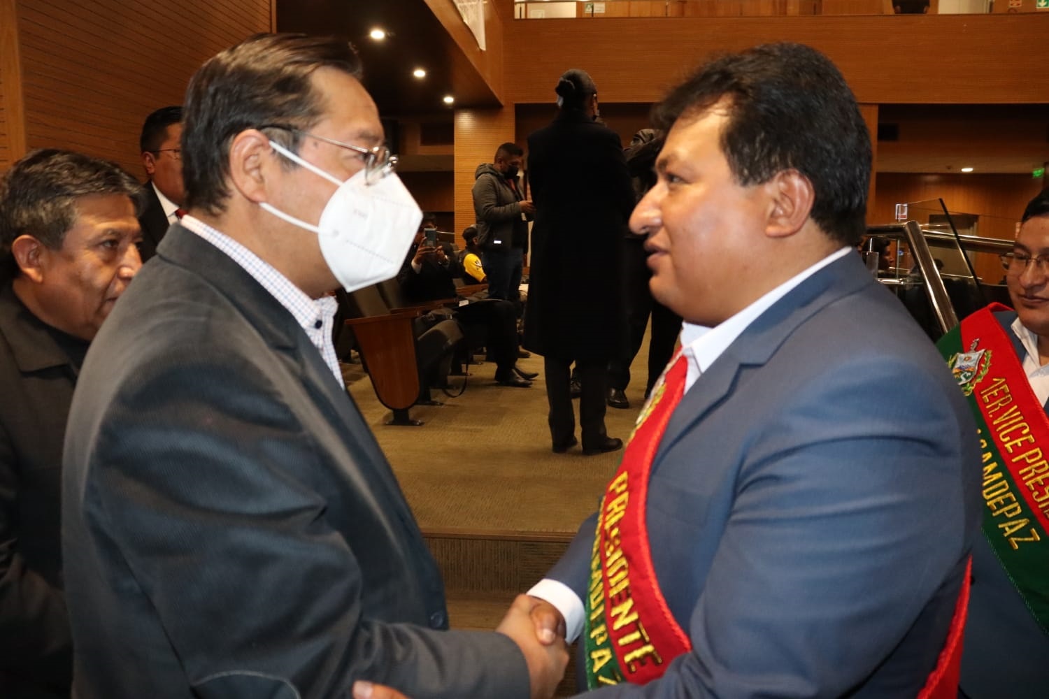 Presidente Luis Arce Catacora junto al vicepresidente, David Choquehuanca participan del 6to. Aniversario de la Asociación de Gobiernos Municipales de La Paz (Agamdepaz). 2Enzo De LucaGalería Fotográfica 25 Octubre 2022 Visto: 8187ShareTwittearshare with Whatsappshare with Telegram AnteriorSiguiente