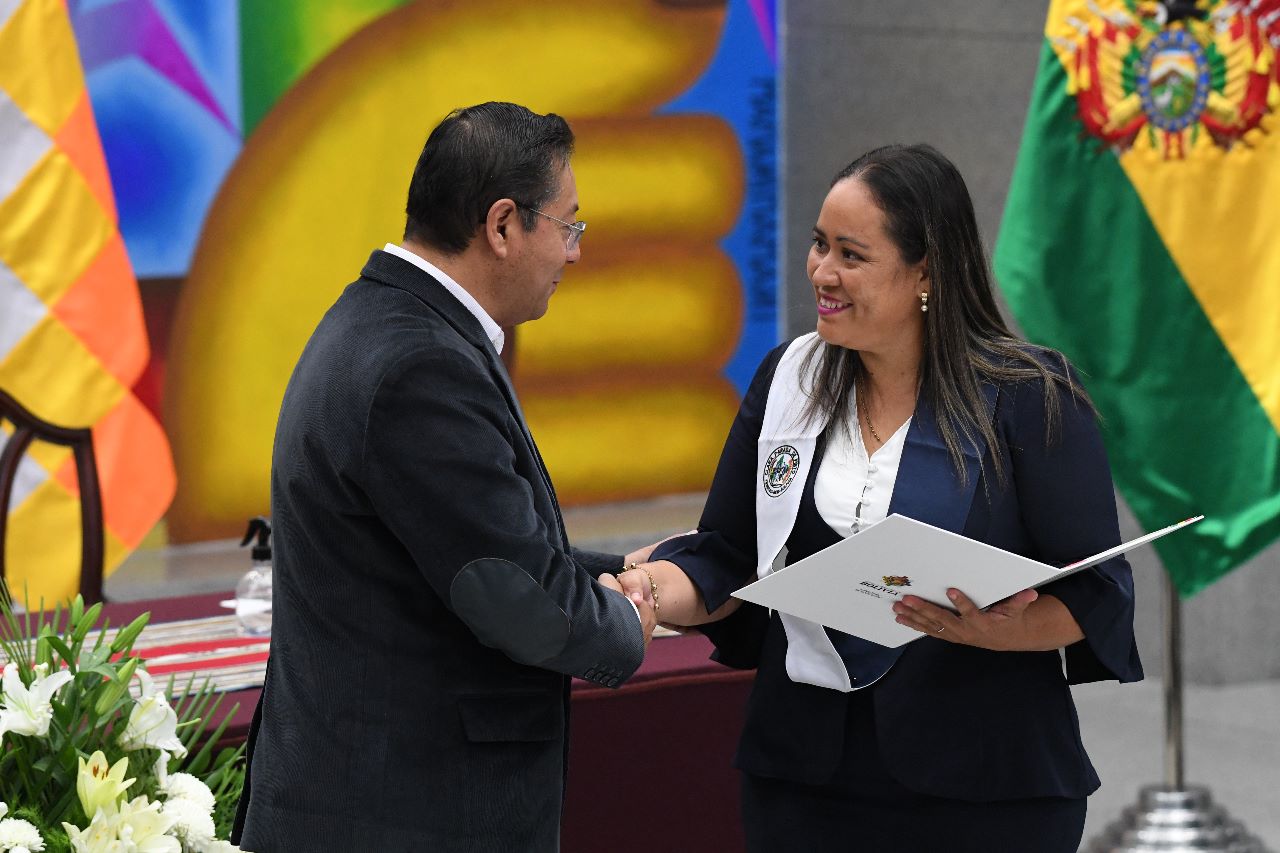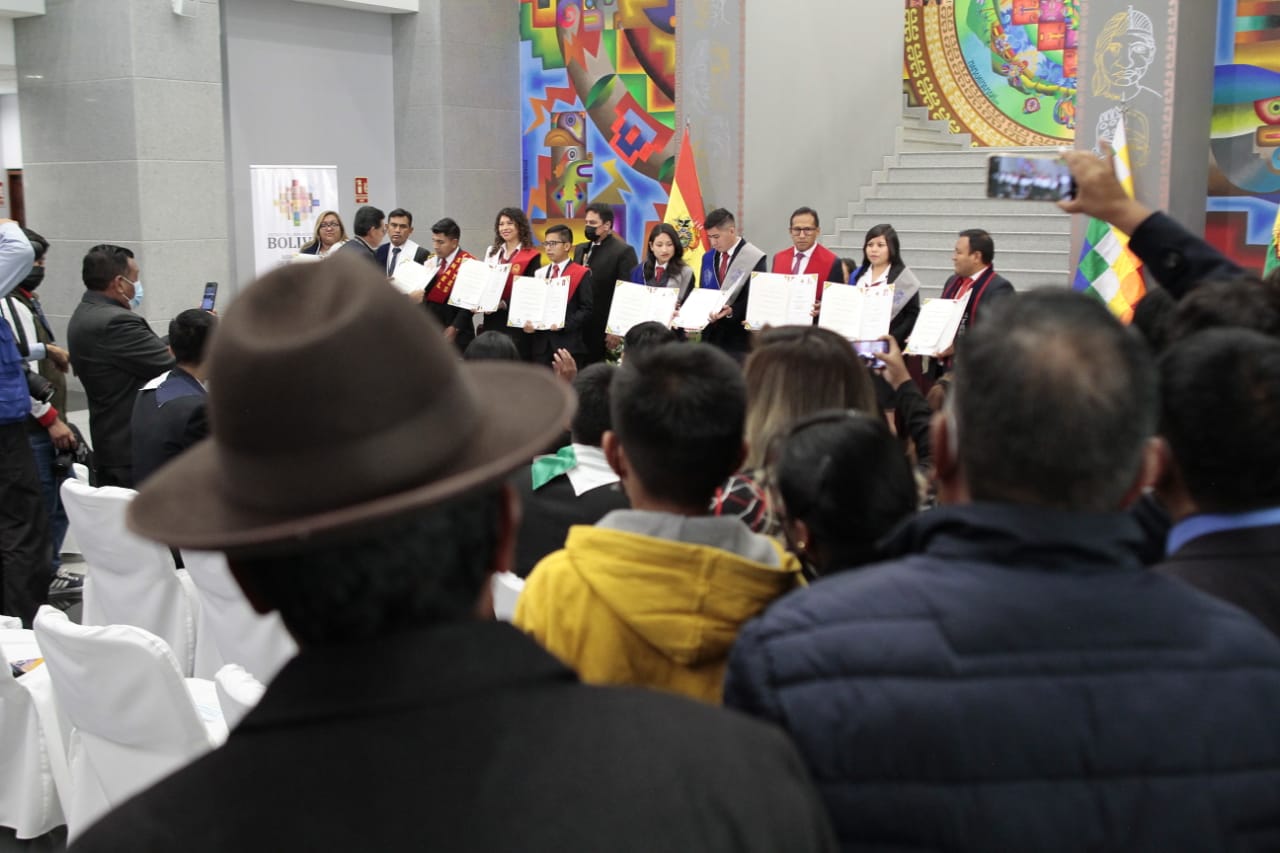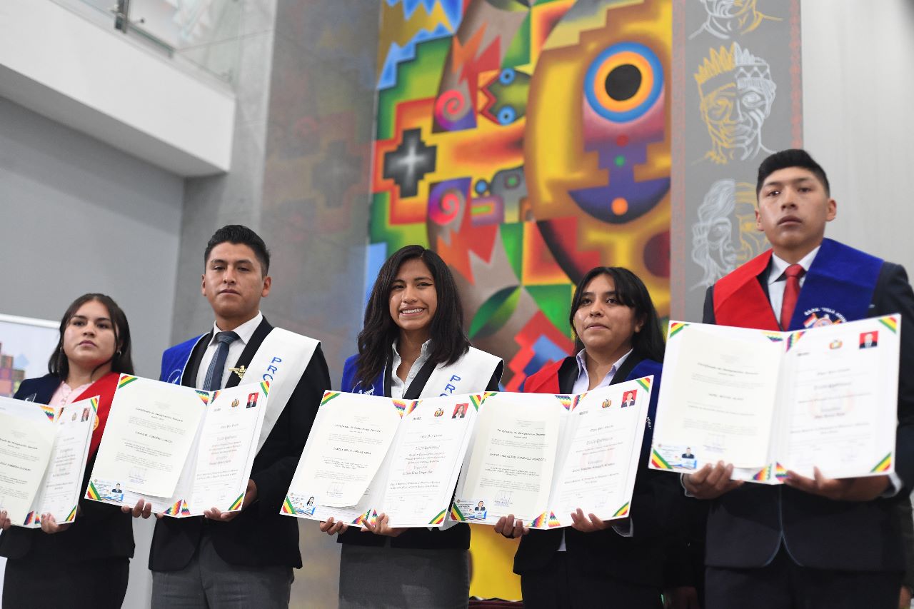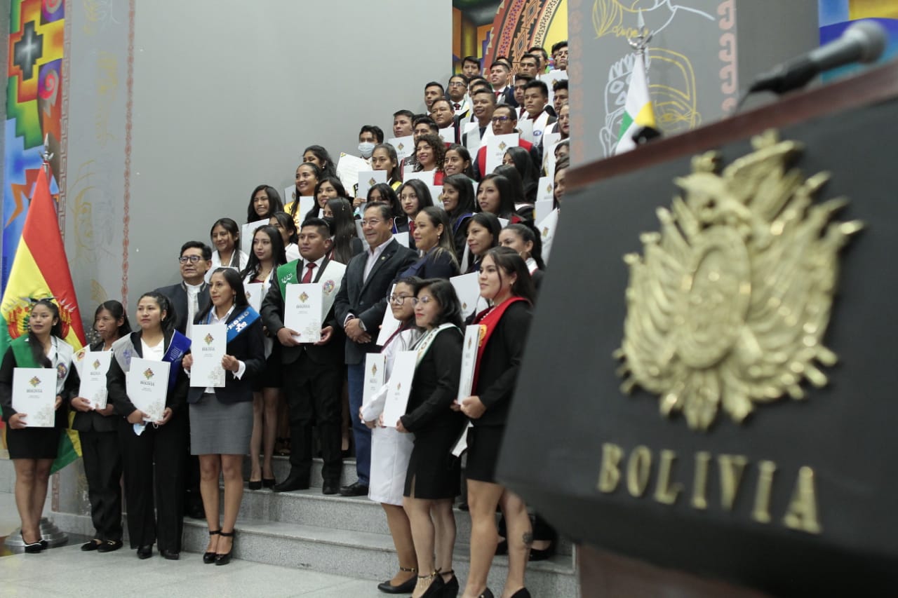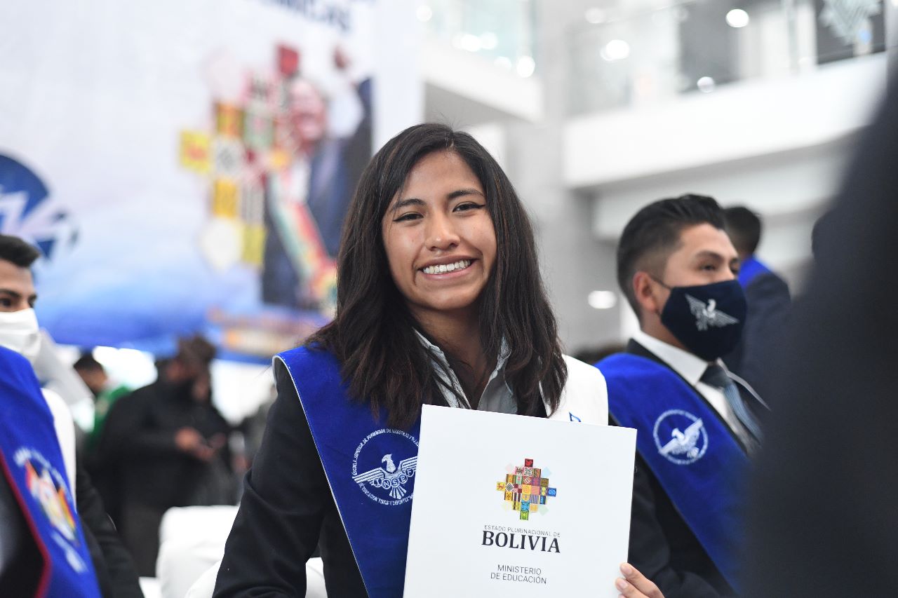El Presidente Luis Arce realizó la entrega de certificados de excelencia a maestros y maestras de las institutos superiores de formaciones de maestros (2/2)Usuario ABIGalería Fotográfica 01 Diciembre 2022 Visto: 10844ShareTwittearshare with Whatsappshare with Telegram FOTOS VICECOMAnteriorSiguiente