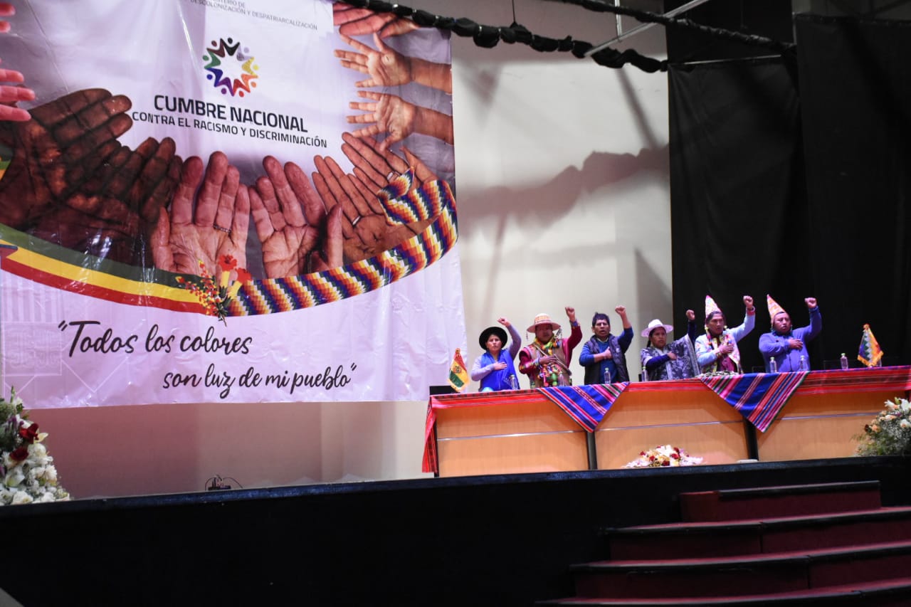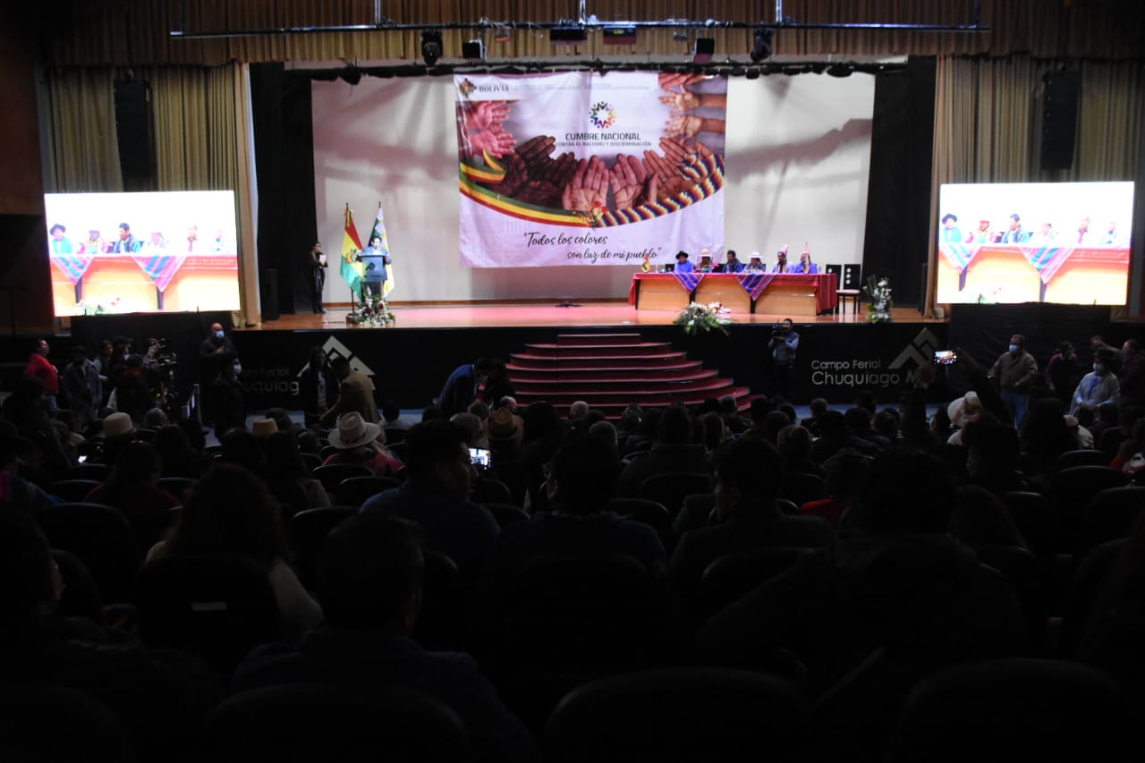 Inauguración de la Cumbre Nacional Contra el Racismo y Discriminación en Campo ferial Chuquiago Marka de La PazUsuario ABIGalería Fotográfica 06 Diciembre 2022 Visto: 10513ShareTwittearshare with Whatsappshare with Telegram FOTOS/ Jorge MamaniAnteriorSiguiente