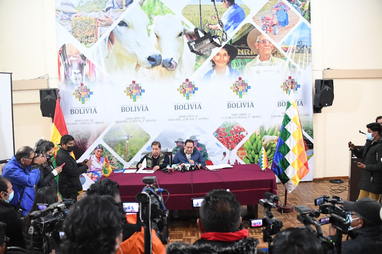 Viceministro de Tierras, Ramiro Guerrero Peñaranda, en conferencia de prensa Usuario ABIGalería Fotográfica 06 Diciembre 2022 Visto: 11220ShareTwittearshare with Whatsappshare with Telegram FOTOS: Ron Schuett / Viceministerio de ComunicaciónAnteriorSiguiente