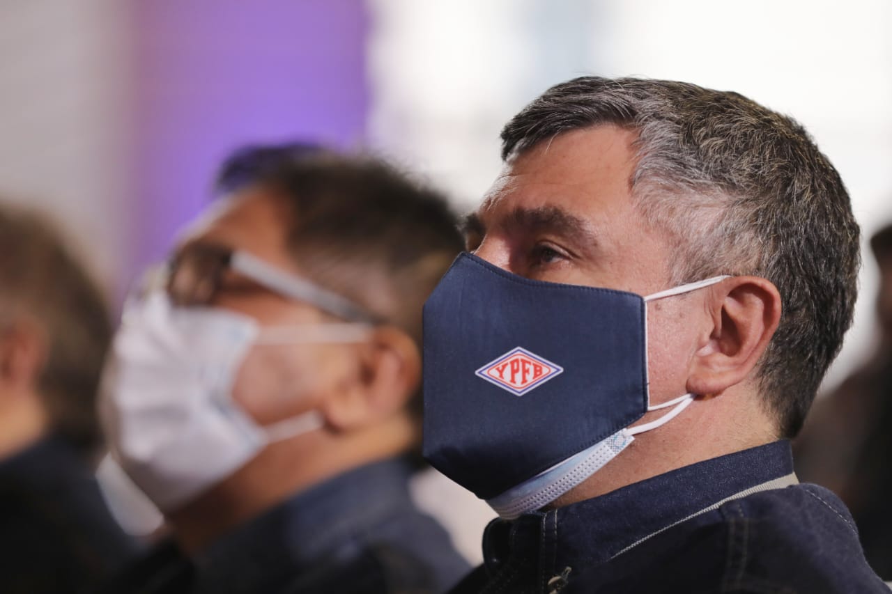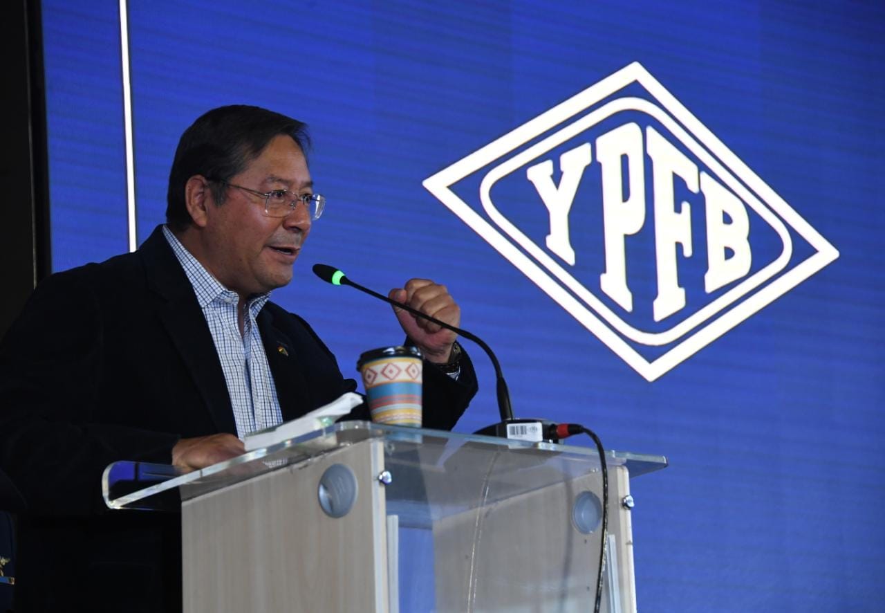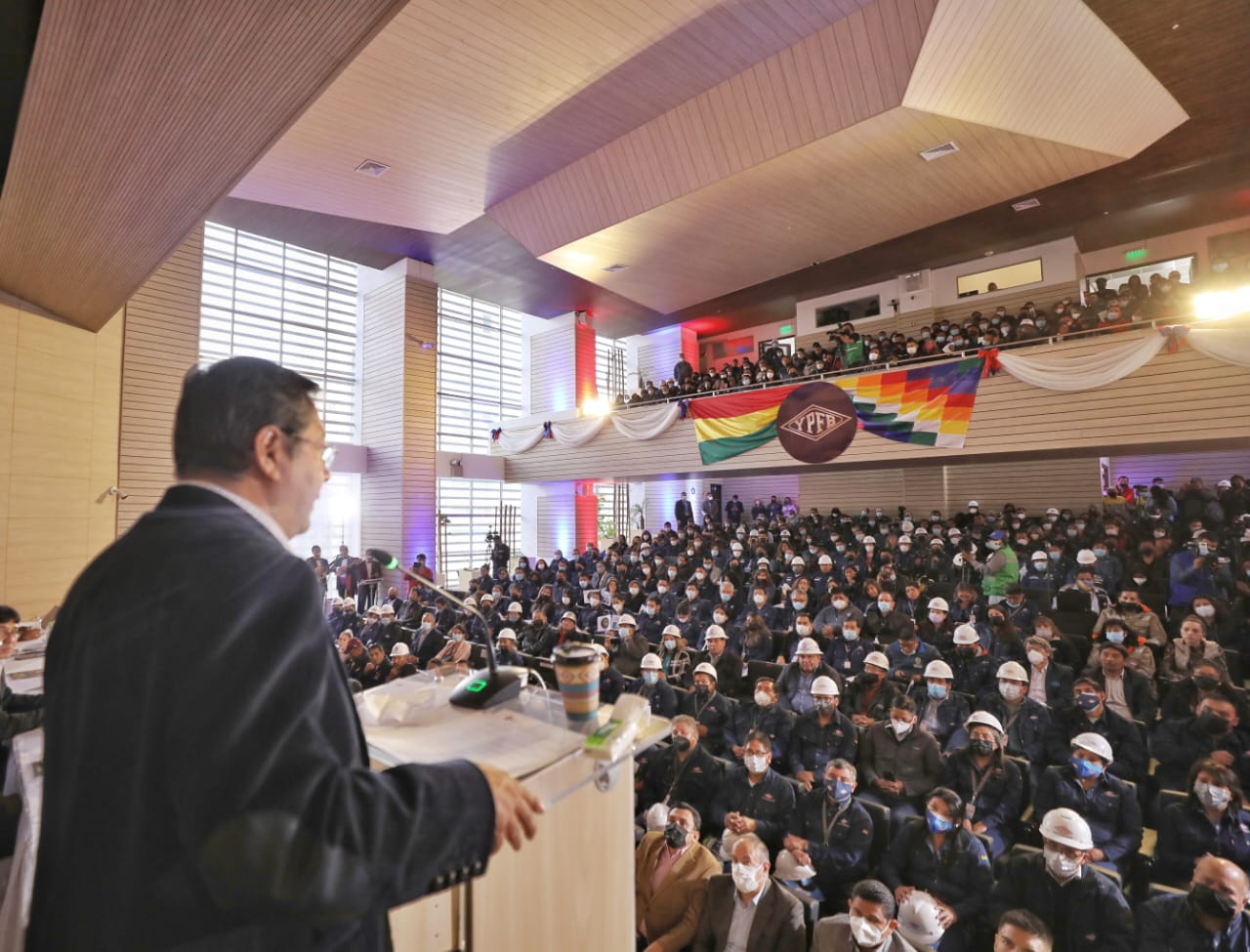 El presidente del Estado Plurinacional de Bolivia, Luis Arce, participa del acto por el 86 aniversario de la empresa estatal Yacimientos Petrolíferos Fiscales Bolivianos YPFB Corp.