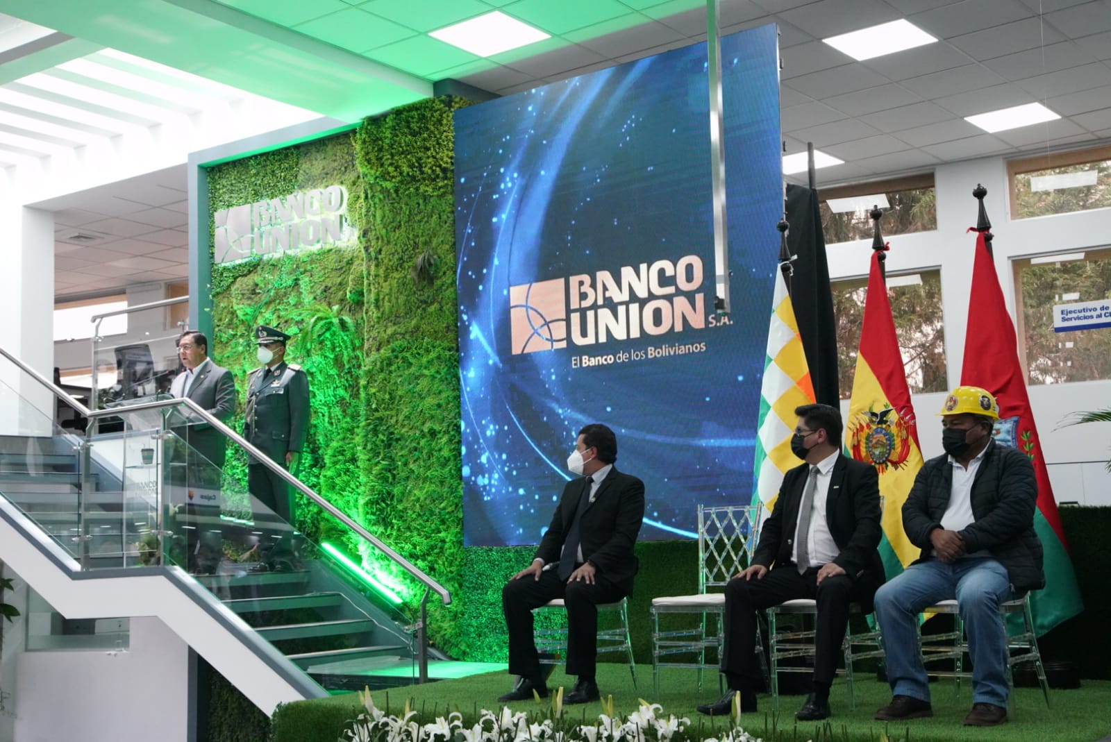 El Presidente del Estado Plurinacional de Bolivia Luis Arce Catacora participa en el aniversario del Banco Unión e inauguración de su nueva Agencia Loyza, en La Paz
