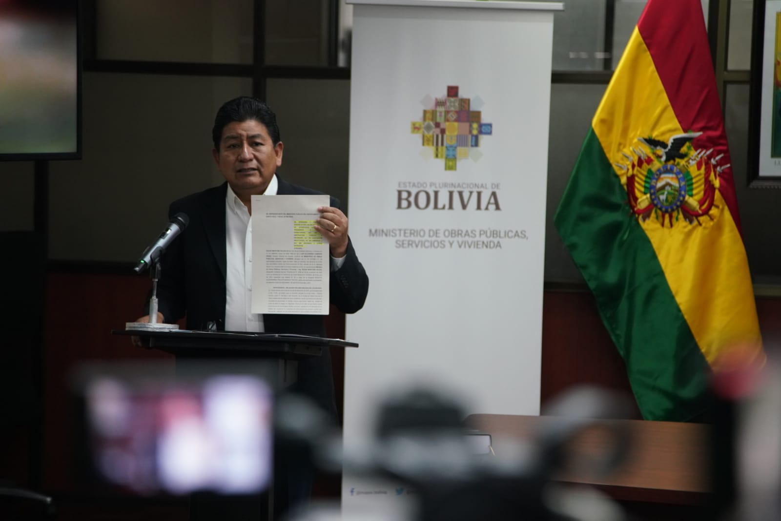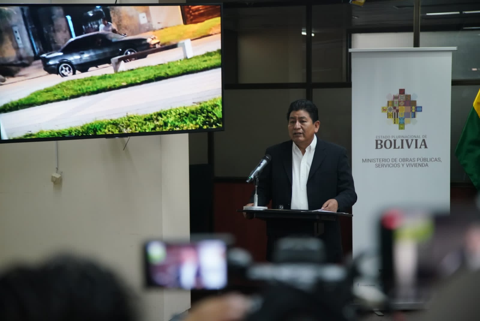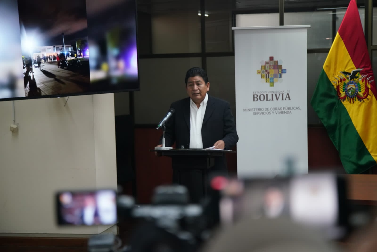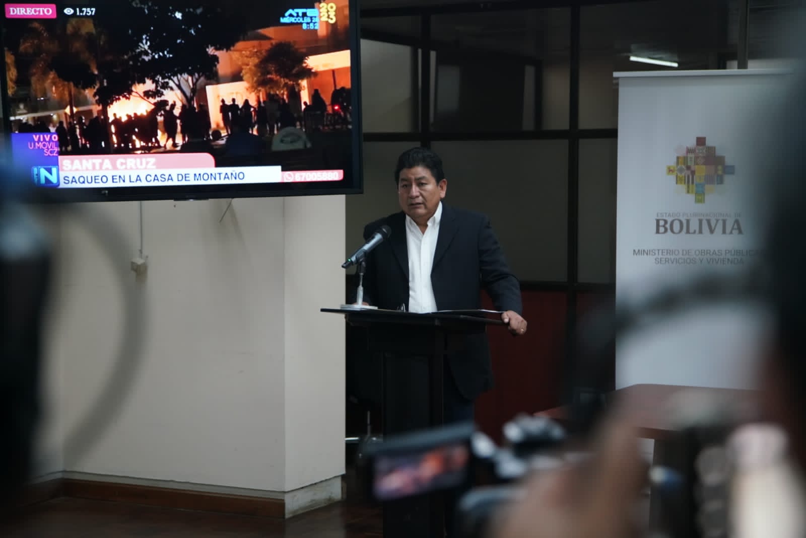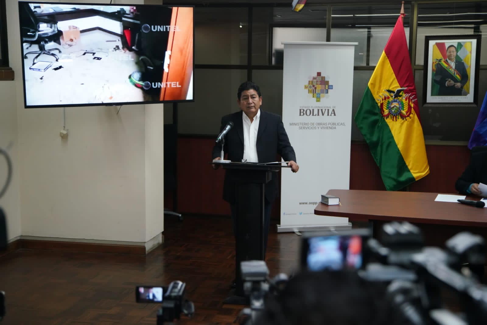 El ministro de Obras Públicas, Servicios y Vivienda, Edgar Montaño, conferencia de prensa tema: Destrozos y robo en el domicilioUsuario ABIGalería Fotográfica 29 Diciembre 2022 Visto: 10989ShareTwittearshare with Whatsappshare with Telegram Fotos Jorge MamaniAnteriorSiguiente