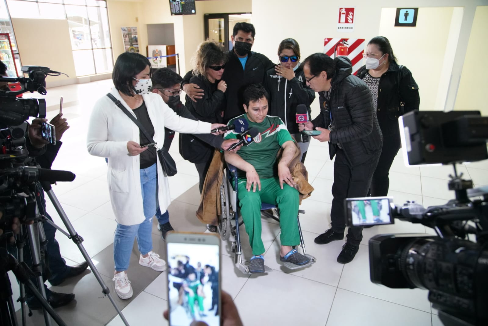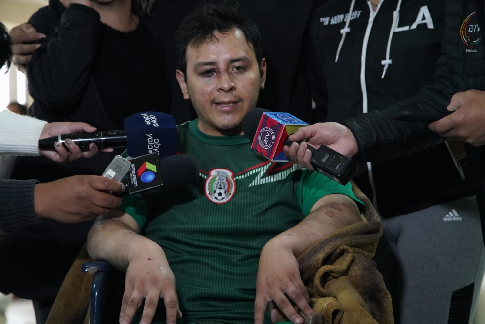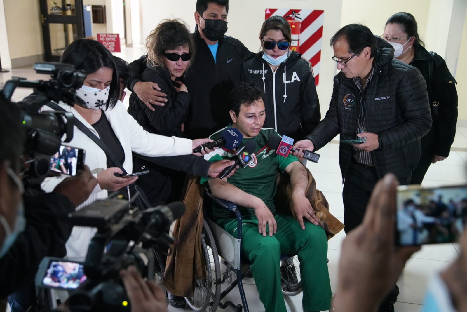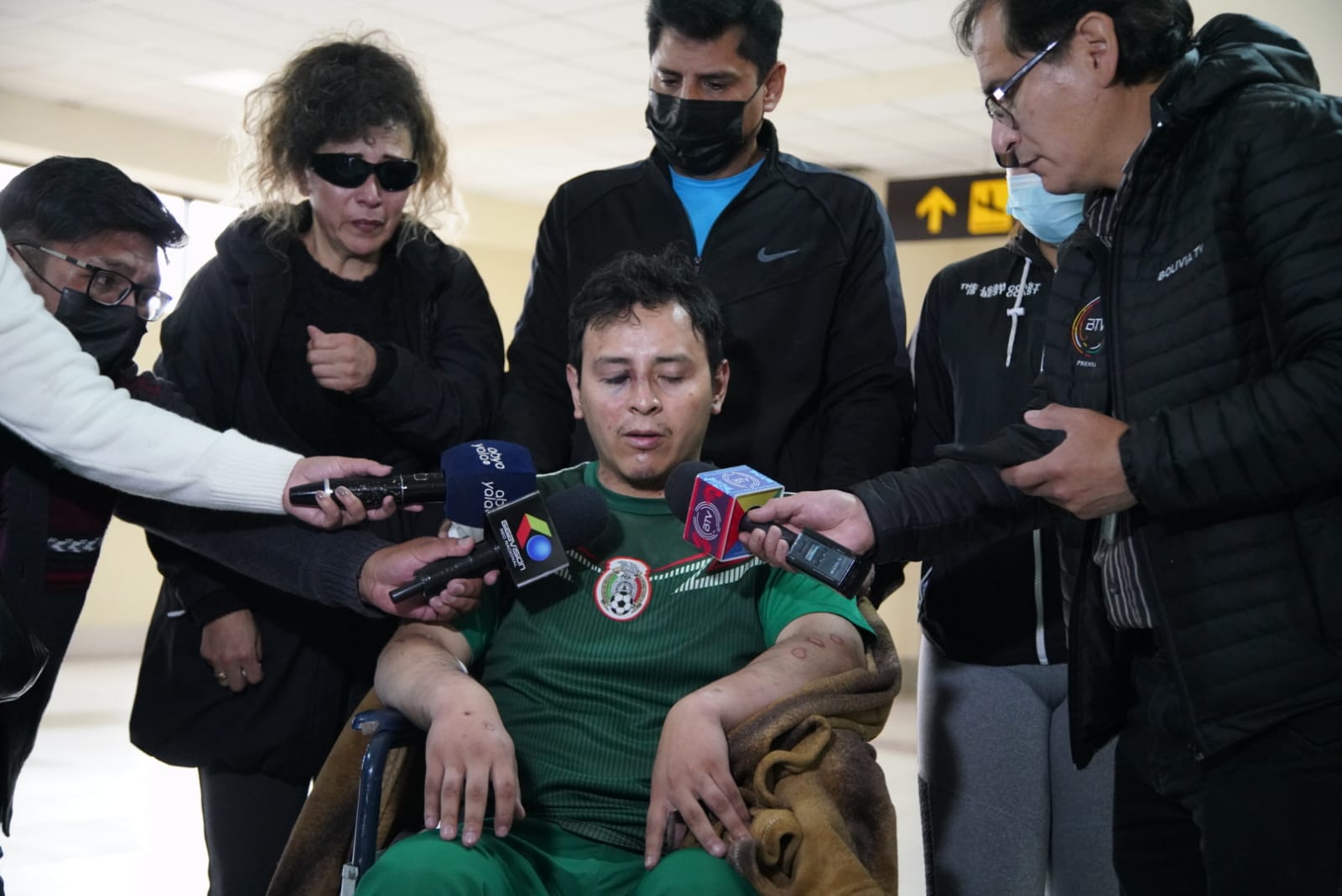 Llegada del funcionario de Impuestos Nacionales al Aeropuerto Internacional de El Alto, quien fue torturado por miembros de la Unión Juvenil CruceñistaUsuario ABIGalería Fotográfica 31 Diciembre 2022 Visto: 8714ShareTwittearshare with Whatsappshare with Telegram Fotos Jorge MamaniAnteriorSiguiente