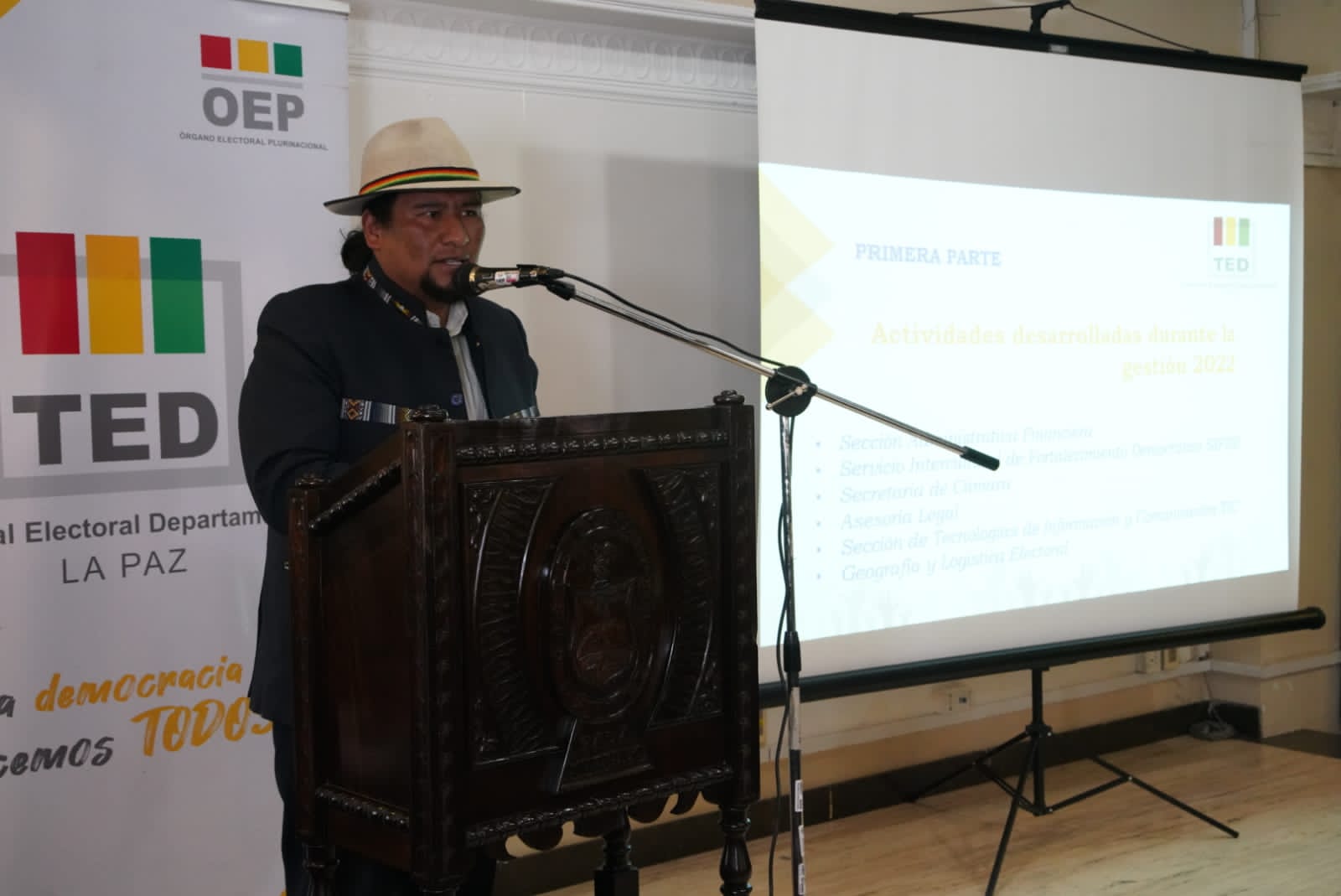 El Tribunal Electoral Departamental (TED) de La Paz, realizó el acto de Rendición de Cuentas de la gestión 2022 en Salón rojo del SereciUsuario ABIGalería Fotográfica 05 Enero 2023 Visto: 10719ShareTwittearshare with Whatsappshare with Telegram Fotos Jorge MamaniAnteriorSiguiente