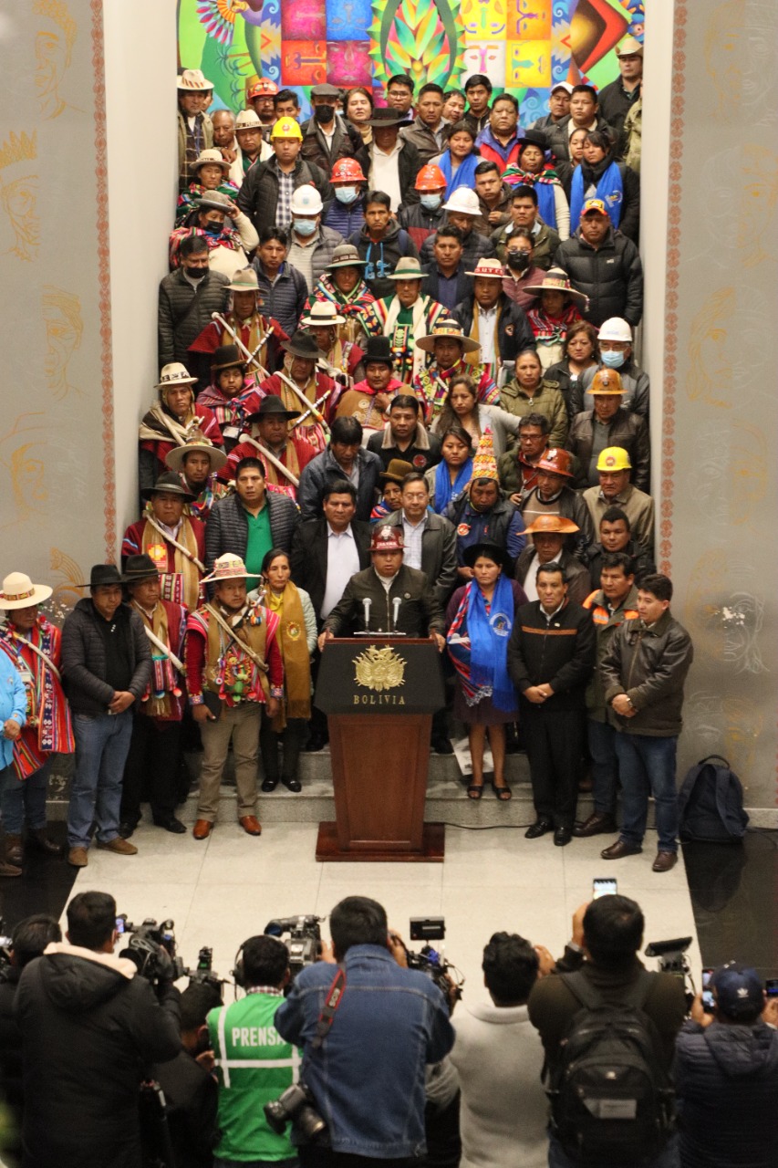 La COB y el Pacto de Unidad se declaran en estado de emergencia y movilización permanente a nivel nacional ante intentos de desestabilización al gobierno luego de sostener una reunión con el presidente del Estado Plurinacional, Luis Arce Catacora