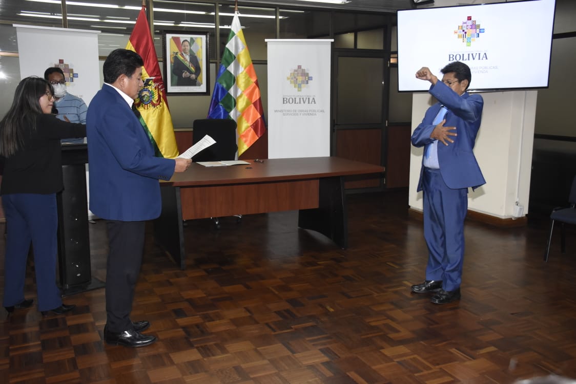 Ministro de Obras públicas y Vivienda, Edgar Montaño tomo posesión a Wilfredo Patricio Gutierrez Carrasco como nuevo Viceministro de Transportes Usuario ABIGalería Fotográfica 09 Enero 2023 Visto: 12465ShareTwittearshare with Whatsappshare with Telegram FOTOS: Gonzalo JallasiAnteriorSiguiente