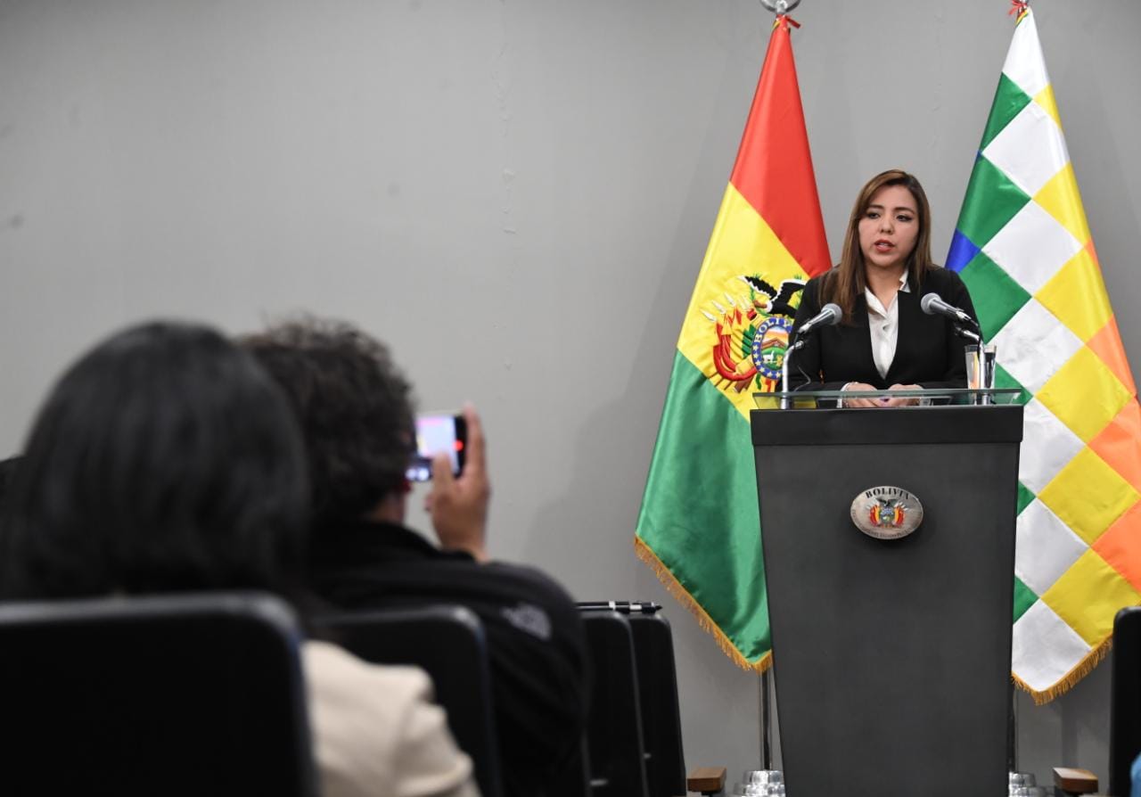 La viceministra de Comunicación Gabriela Alcón en conferencia de prensa en Casa Grande del PuebloUsuario ABIGalería Fotográfica 11 Enero 2023 Visto: 11638ShareTwittearshare with Whatsappshare with Telegram FOTOS: Josue Cortez / Viceministerio de ComunicaciónAnteriorSiguiente