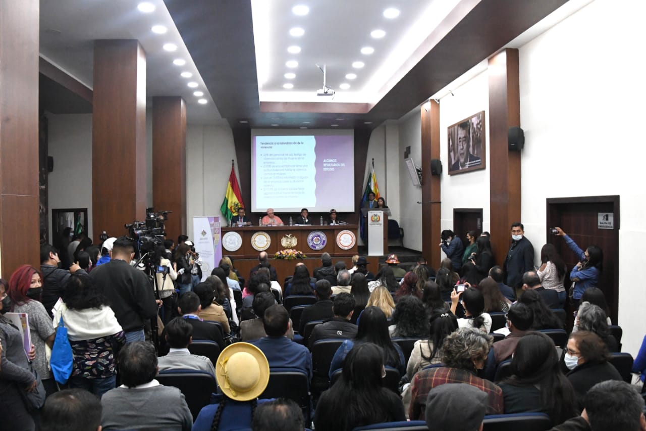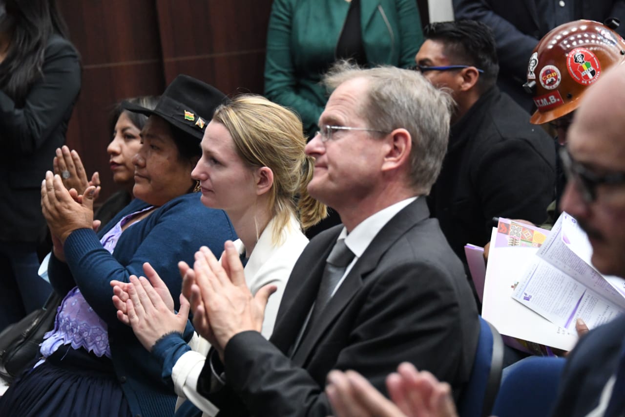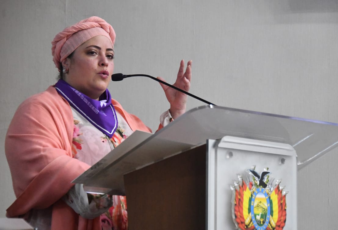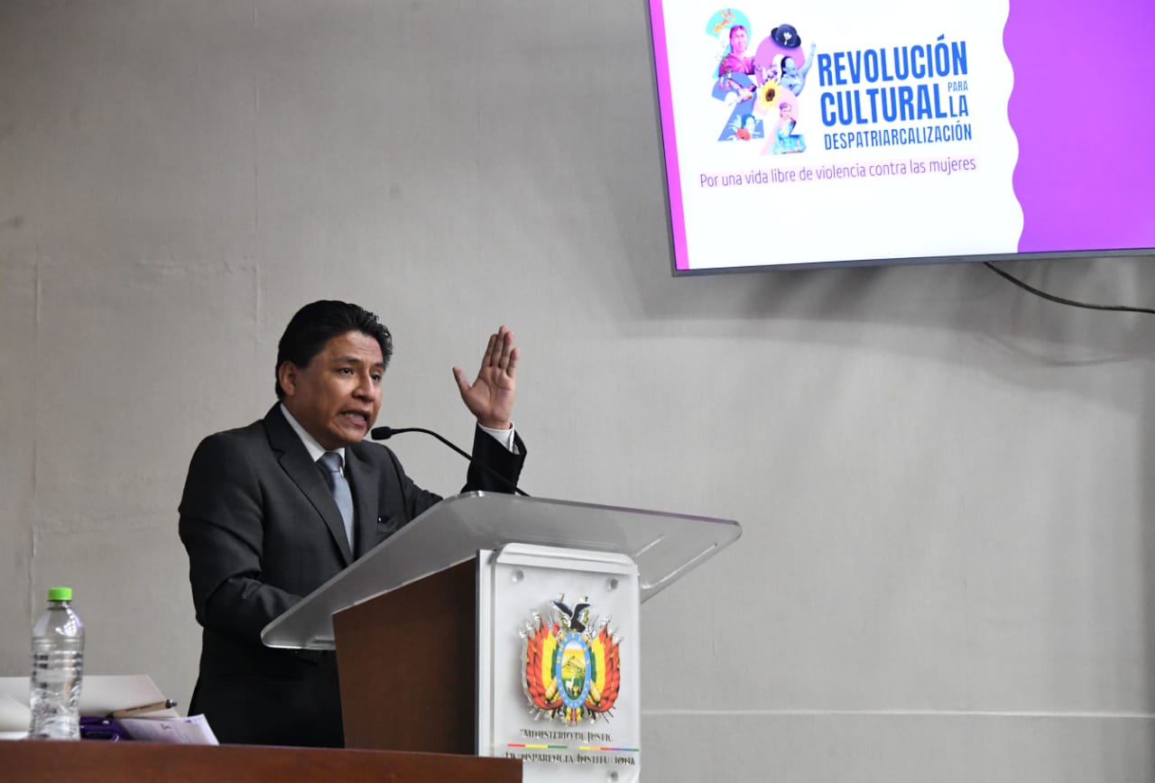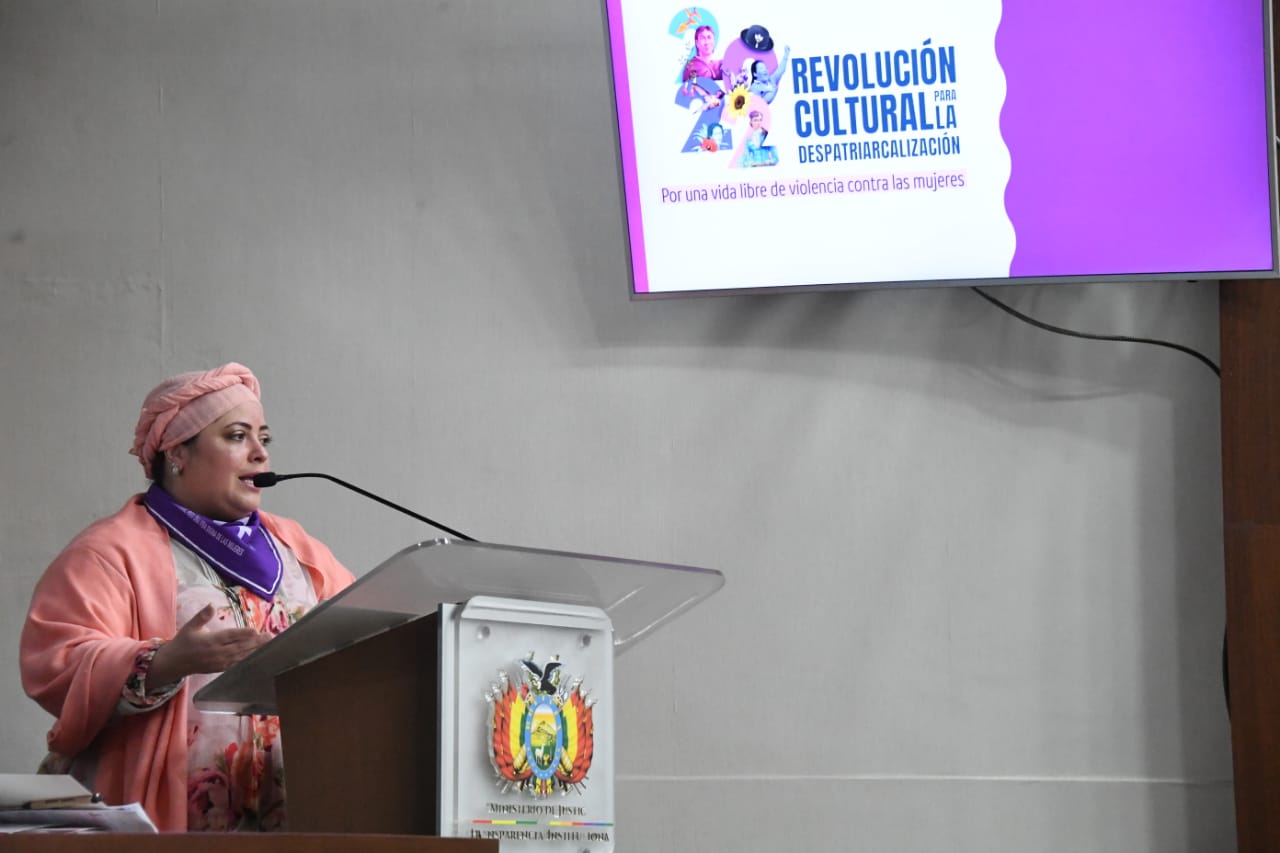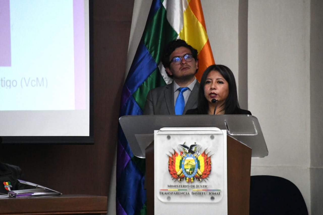 Lanzamiento del Sello Empresa Comprometida con una Vida Libre de Violencia Contra las Mujeres en el Estado Plurinacional de Bolivia, con la presencia de la ministra de la Presidencia Maria Nela Prada y el ministro de Justicia y Transparencia Instituciona