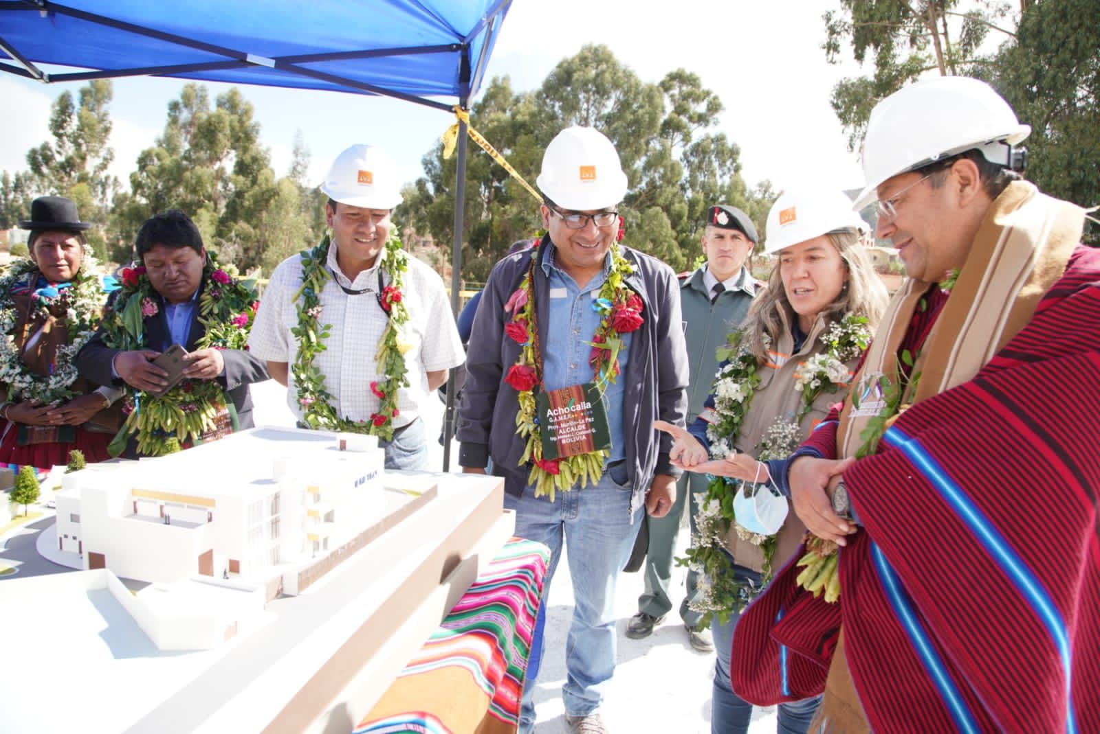 El Presidente del Estado Plurinacional de Bolivia Luis Arce Catacora participó en el inicio y avance de la construcción de un laboratorio e instalaciones del Instituto Boliviano de Metrología - IBMETRO