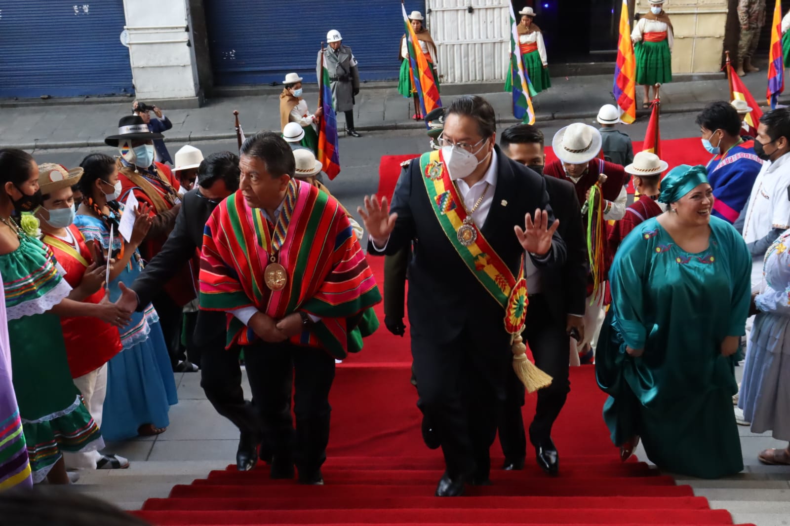El Presidente del Estado Luis Arce y el vicepresidente David choquehuanca participan de los actos protocolares por el Dia del Estado Plurinacional de BoliviaUsuario ABIGalería Fotográfica 22 Enero 2023 Visto: 7796ShareTwittearshare with Whatsappshare with Telegram Fotos Comunicacion PresidencialAnteriorSiguiente