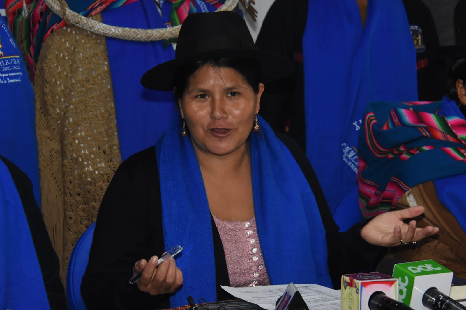 La secretaría ejecutiva de la Confederación Nacional de Mujeres Campesinos Indígenas Originarias de Bolivia Bartolina Sisa, Flora Aguilar en conferencia de prensaUsuario ABIGalería Fotográfica 26 Enero 2023 Visto: 8953ShareTwittearshare with Whatsappshare with Telegram Fotos: Gonzalo JallasiAnteriorSiguiente