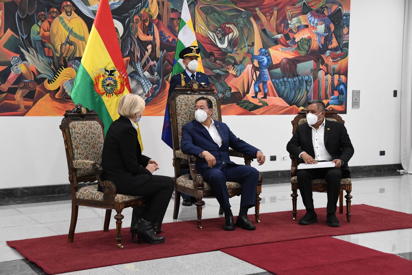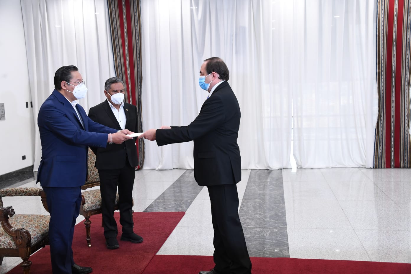 El Presidente del Estado Plurinacional de Bolivia, Luis Arce Catacora, recibió las Cartas Credenciales de los embajadores de Canadá, Colombia, Croacia, Ecuador, Finlandia, Ghana, Japón y República Checa en la Casa Grande del Pueblo