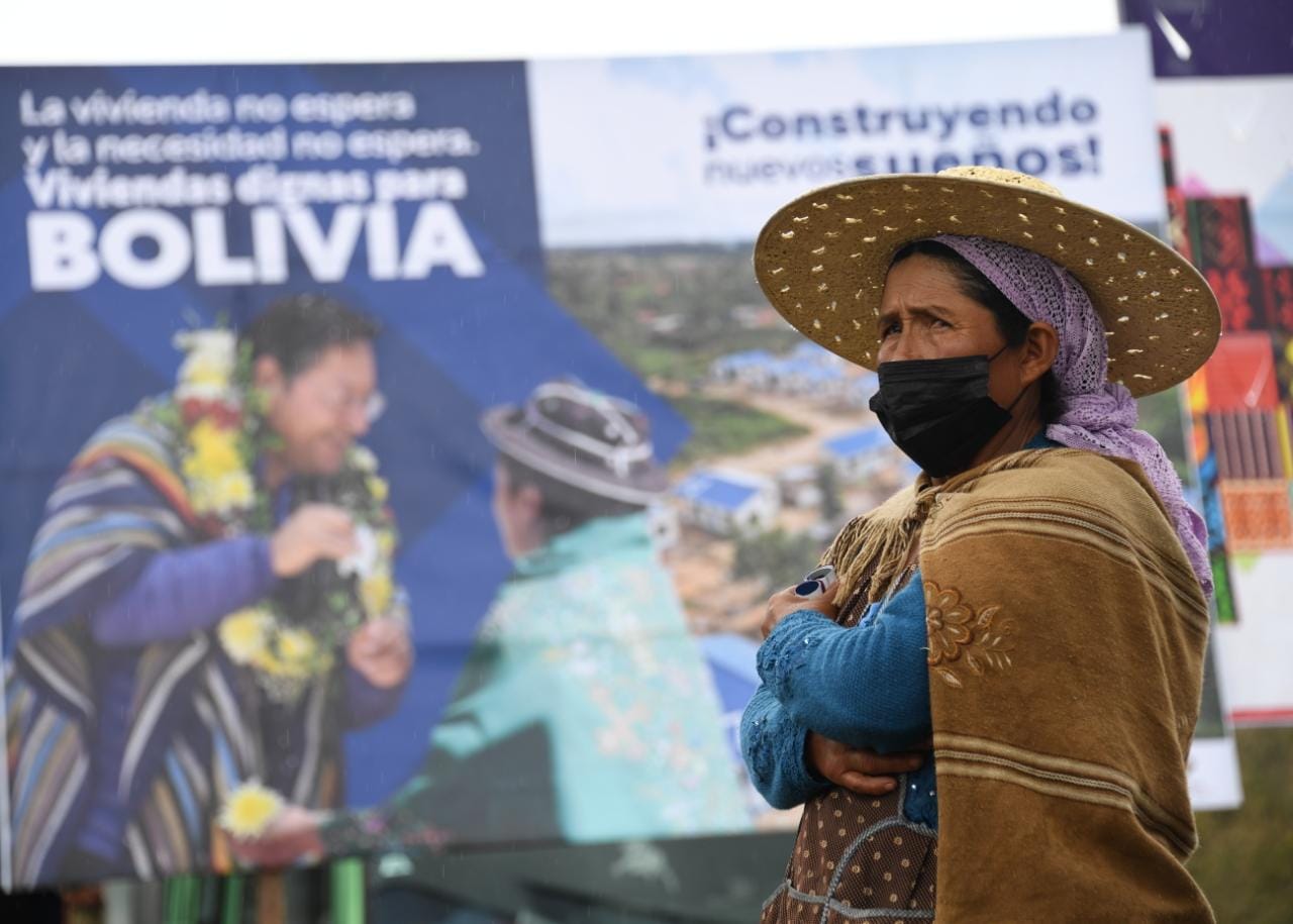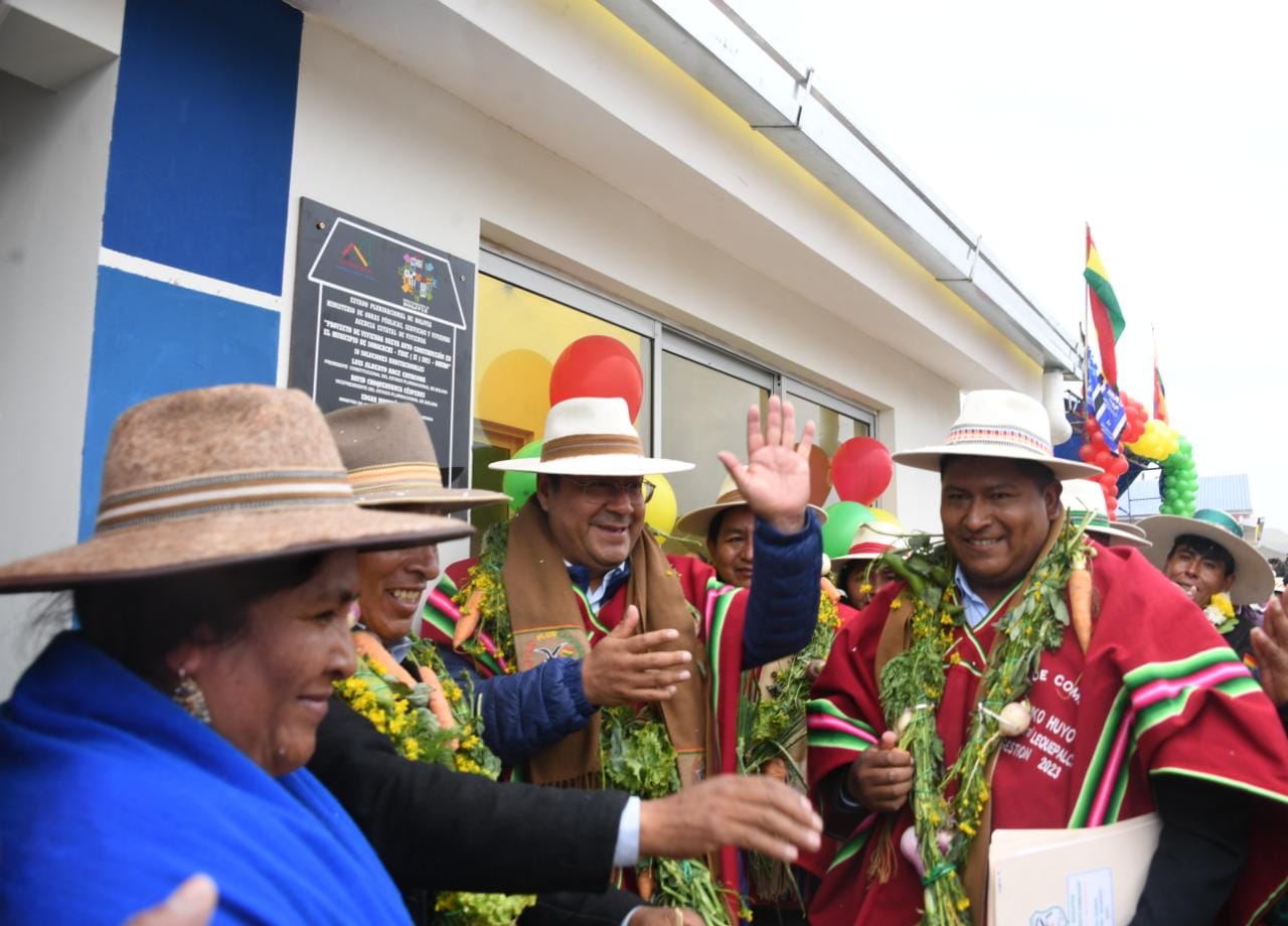 El presidente del Estado Luis Alberto Arce entrega el proyecto de vivienda nueva autoconstrucción en el municipio de Soracachi de la Provincia Cercado, Oruro